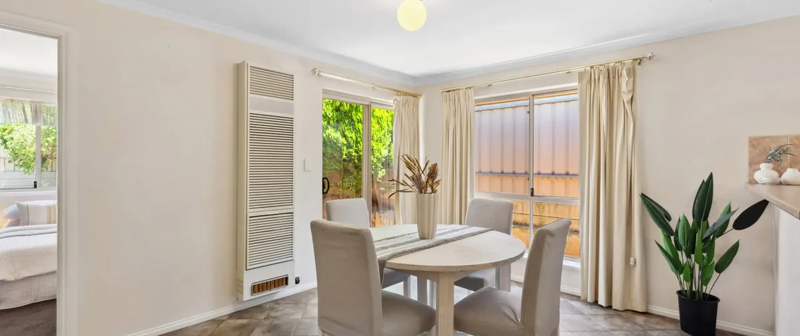 - Bright and airy open-plan kitchen and dining area, complemented by a warming heater
