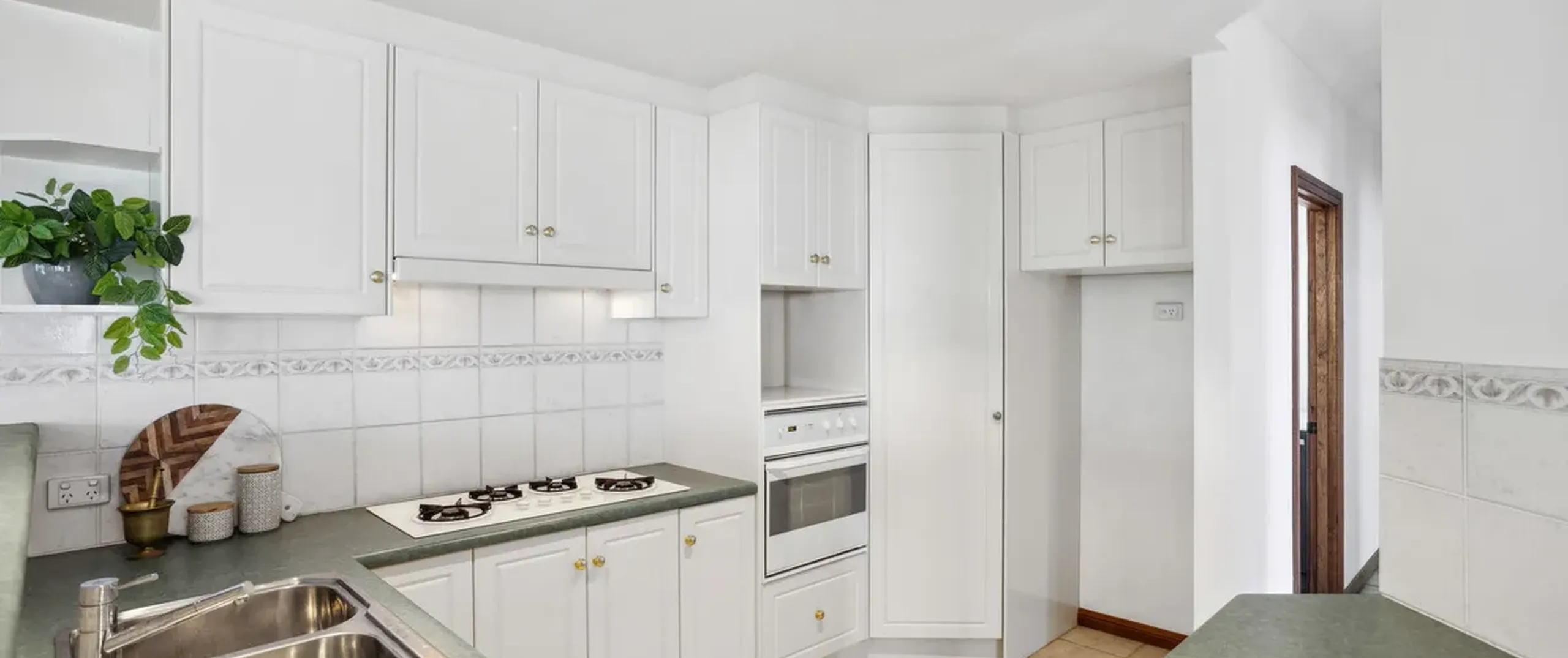 - Classic white kitchen offering a pantry and ample cupboard and bench space