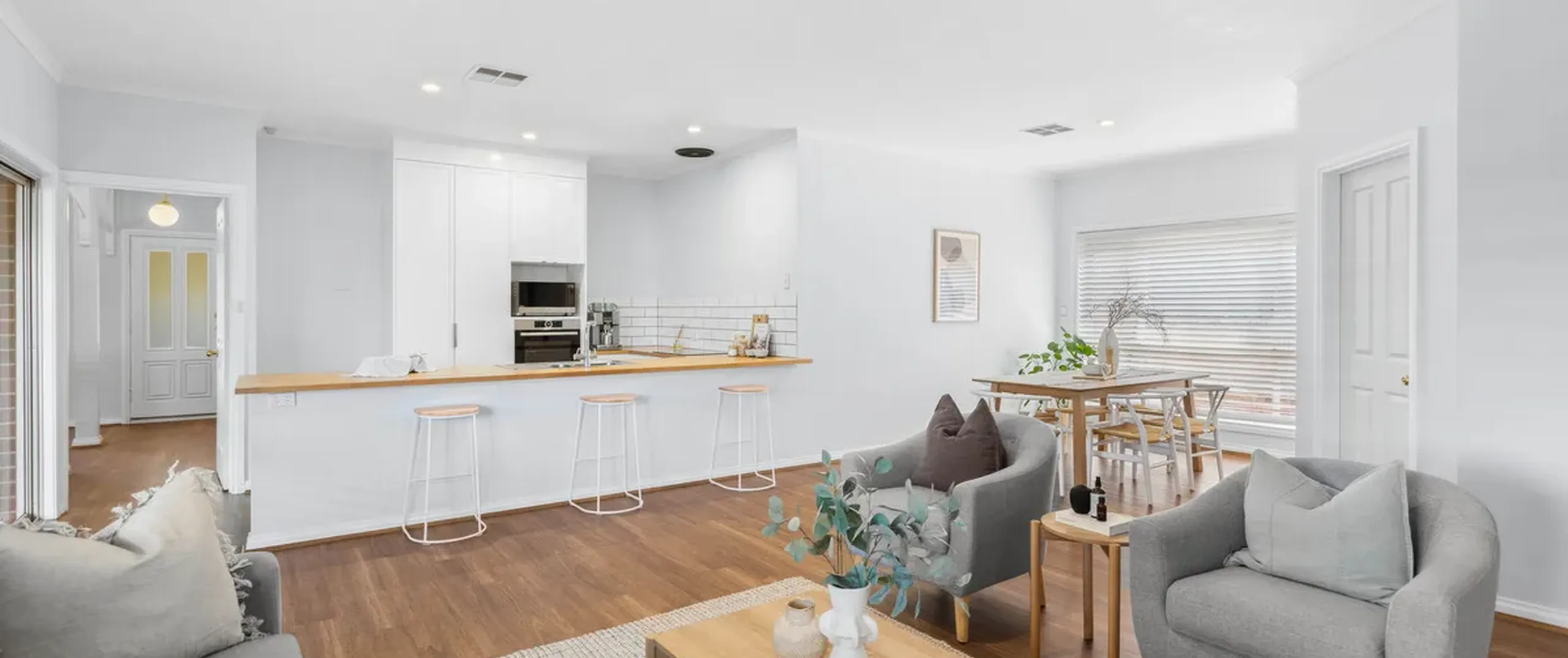 - Light filled open plan living, dining and kitchen with seamless connection to the outdoor entertaining area