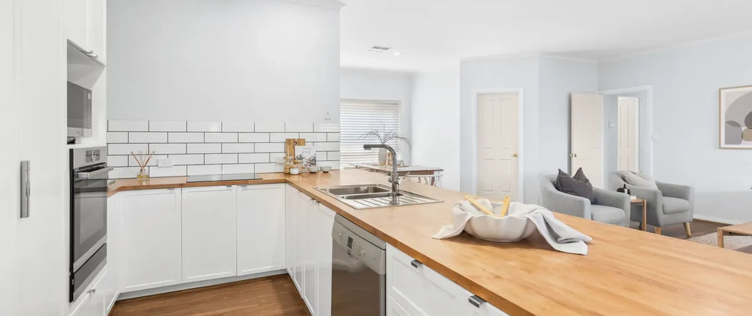 - Stylish kitchen with Bosch dishwasher, oven, electric cook top, breakfast bar and ample cupboard and bench space