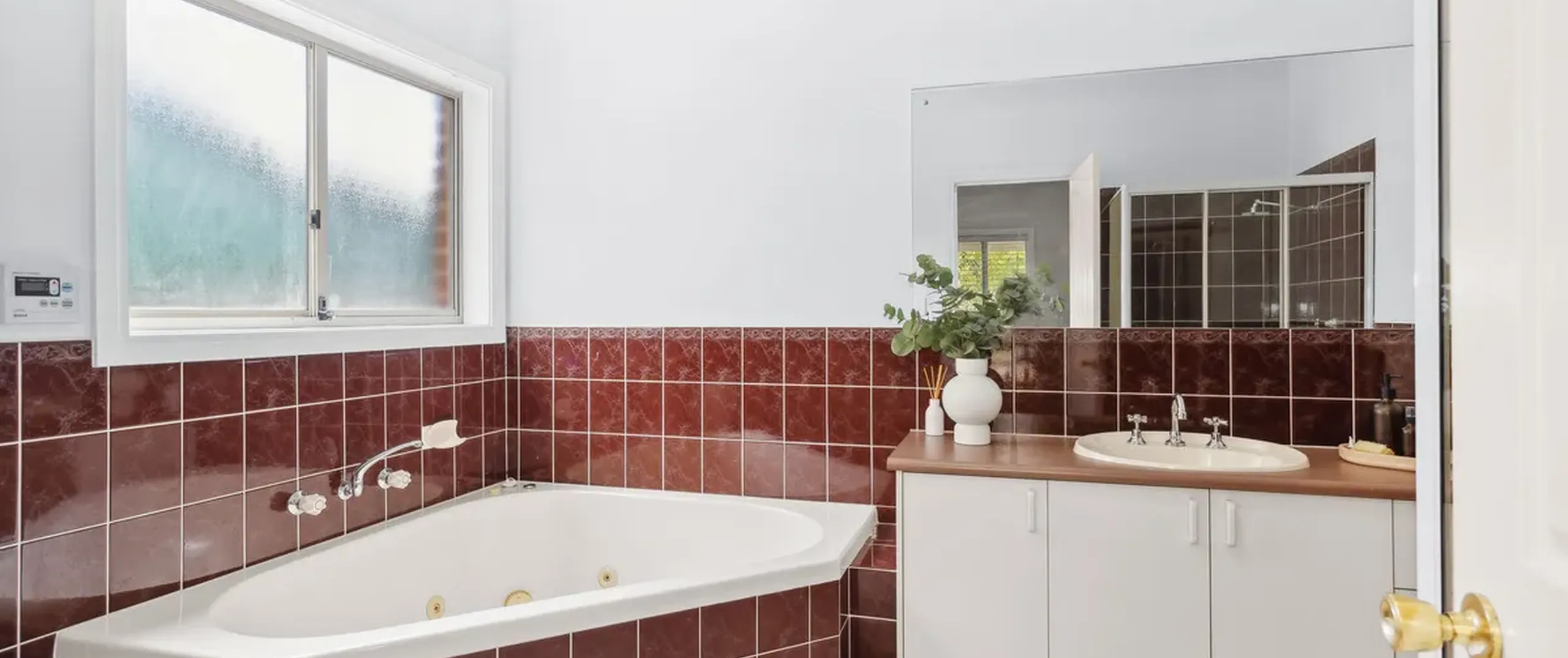 - Separate laundry with built-in cupboard and external access