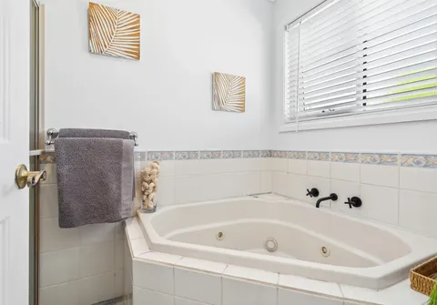 - Three-way main bathroom with a powder room, toilet, shower, and spa bath