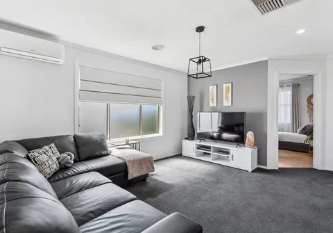 Step inside to discover a harmonious blend of space, style, and comfort. The heart of the home features an open-plan kitchen, living, and dining area, adorned with plantation shutters, timber-look flooring, and stylish feature lighting. A separate formal lounge offers versatility, easily transforming into a fourth bedroom to suit your family's evolving needs.