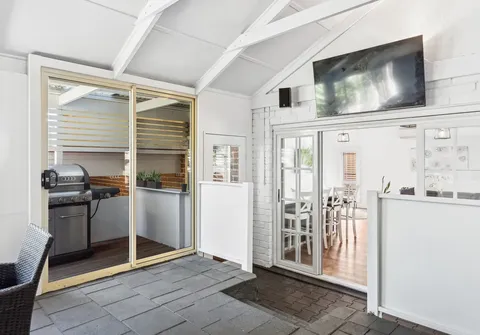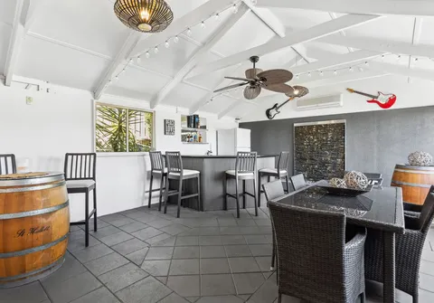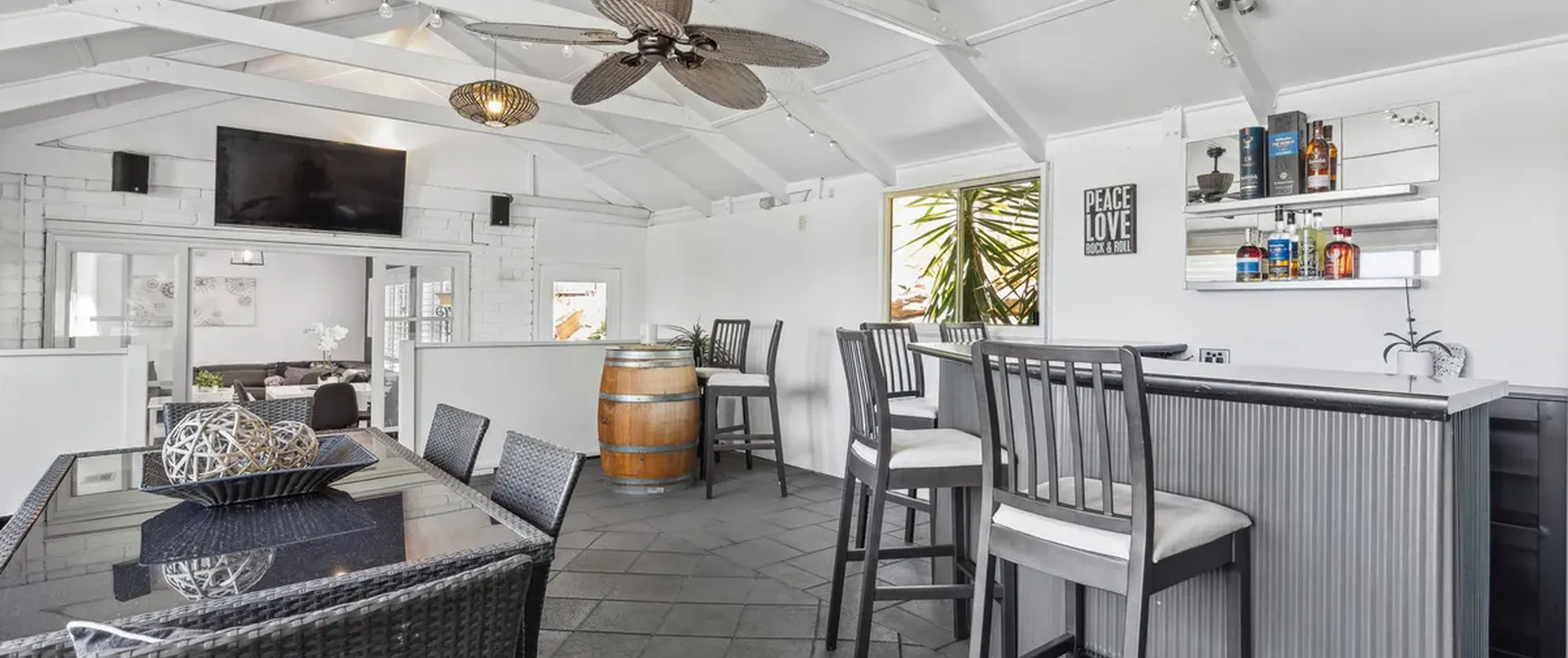 Seamlessly extending from the living area, the enclosed outdoor entertainment space is a true gem. Thoughtfully designed with a ceiling fan, bar, and split-system air conditioning, it’s a welcoming retreat for year-round enjoyment.