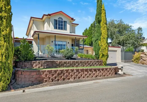 Perfectly positioned in a prestigious dress-circle location, this beautifully updated double-storey four-bedroom home sits proudly on the high side of the street, capturing breathtaking hillside views. Nestled on an allotment 442m2 (approx.), it boasts a wide frontage, a spacious elevated verandah with a sleek glass balustrade, and a double driveway—offering ample vehicle storage while exuding undeniable street appeal. Set in a beautiful, quiet street, this home captivates from the moment you arrive.