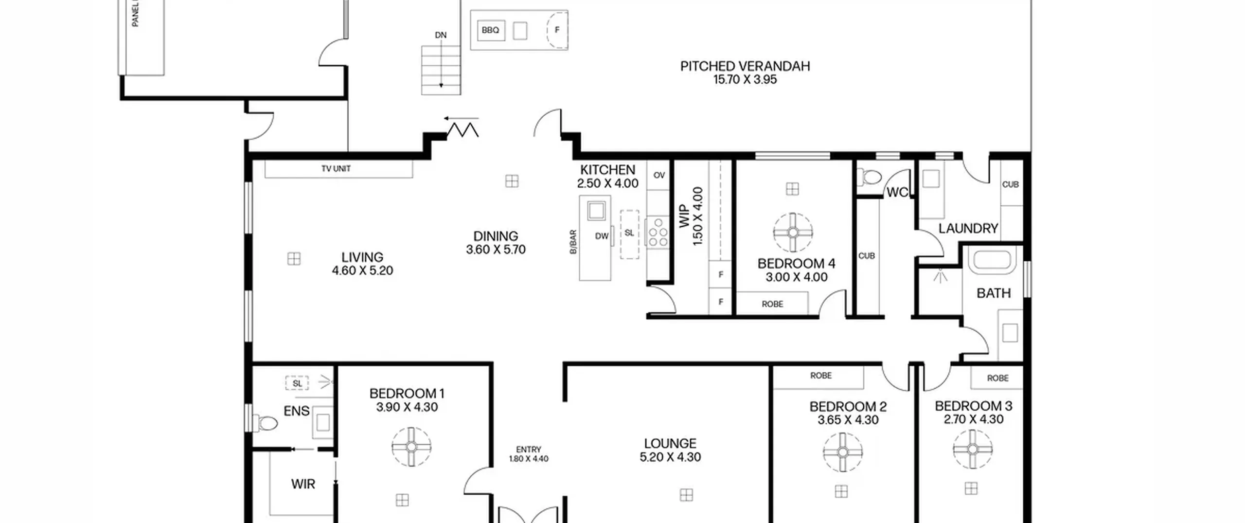 - Bedrooms 2, 3, and 4 of generous size with built-in robes and ceiling fans