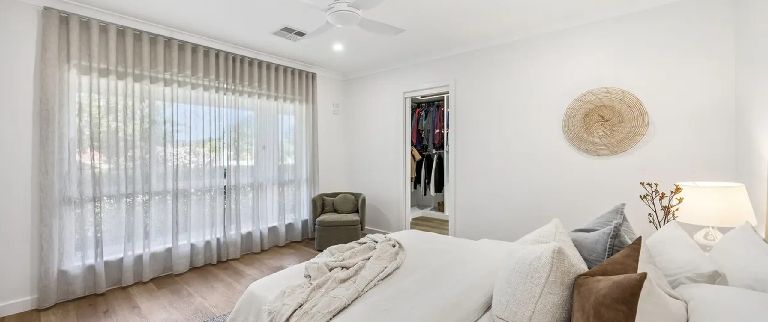 - Master suite with walk-in robe, ceiling fan, and modern ensuite