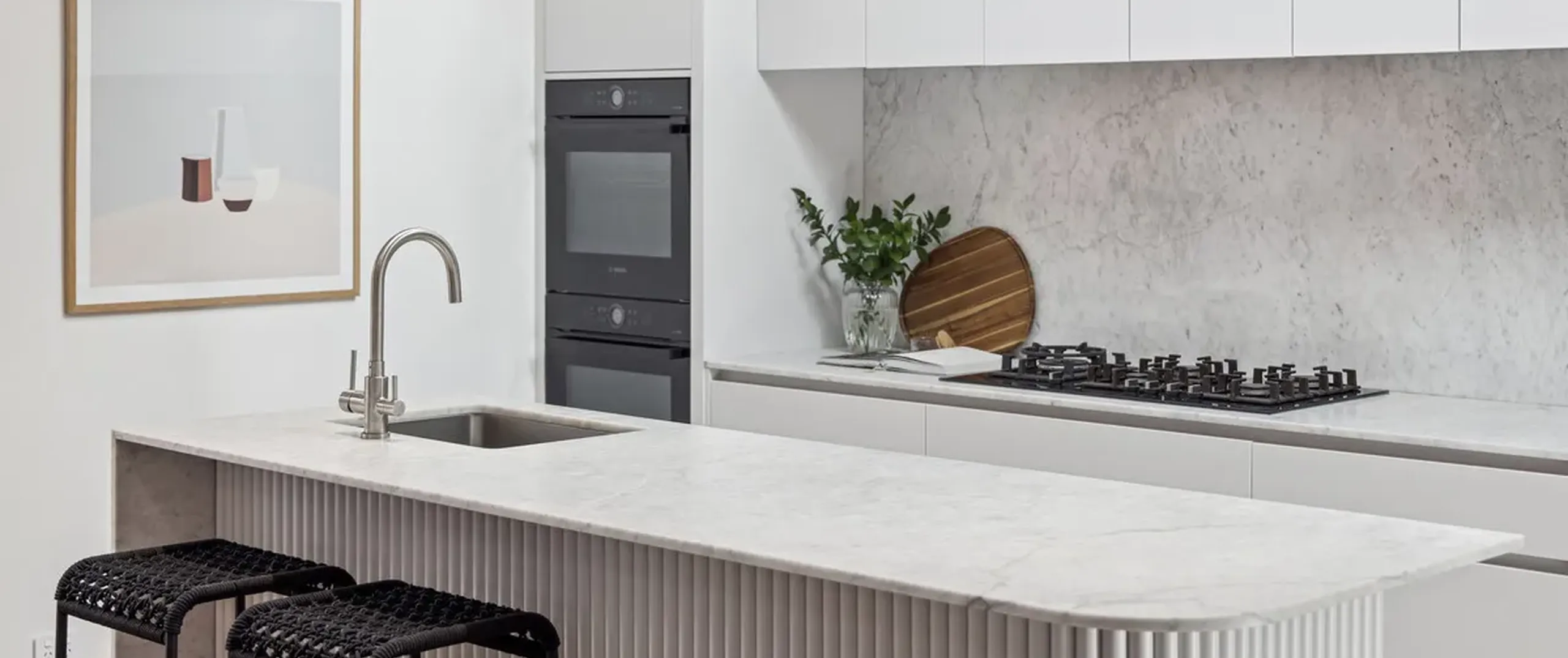 - Modern kitchen with premium features and quality appliances including integrated Bosch Fridge and Freezer and integrated Bosch dishwasher