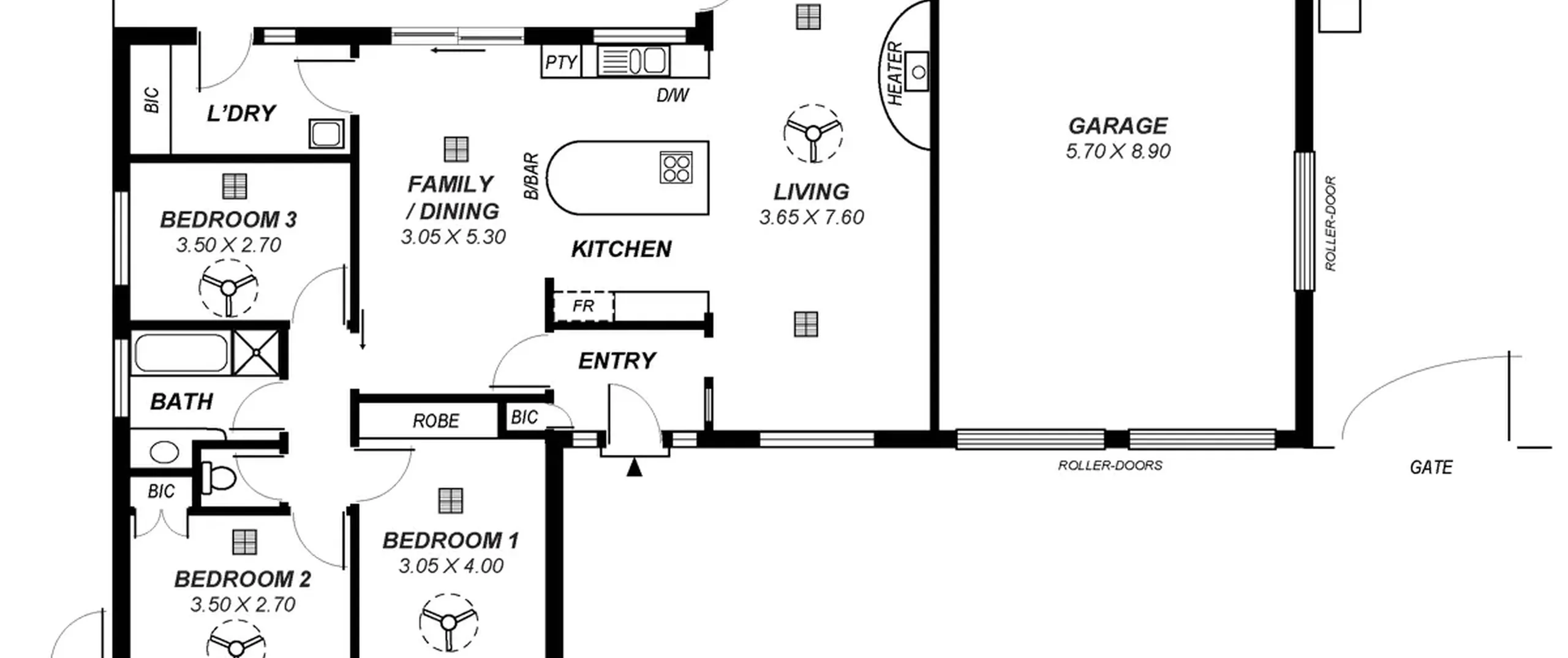 - Three generous bedrooms with ceiling fans, bedrooms 1 and 2 with built-in robe