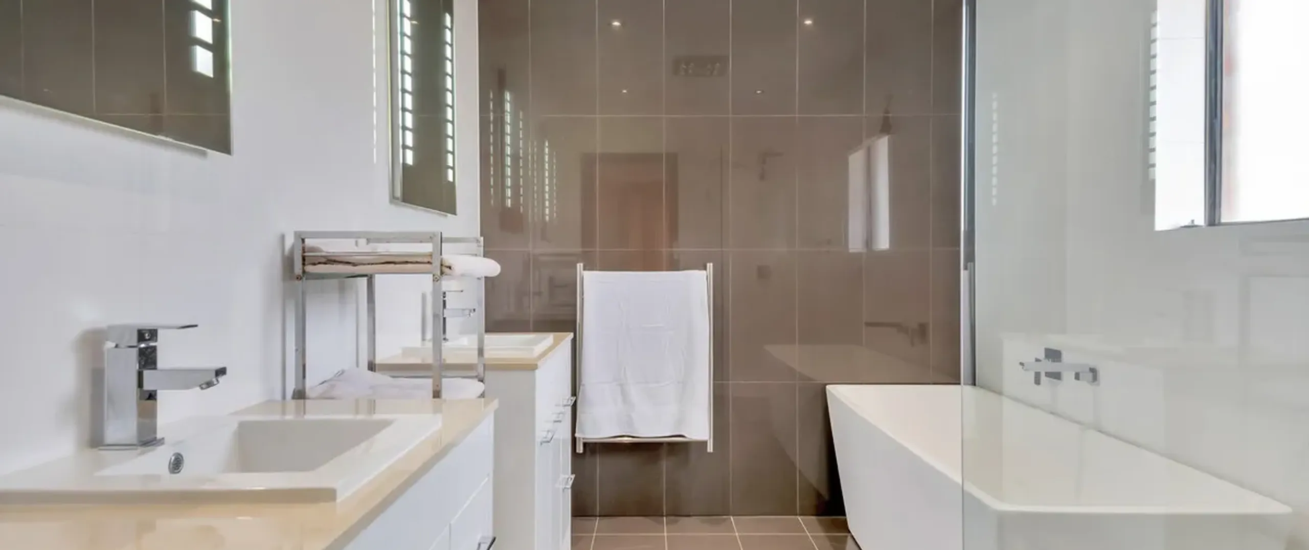 - Renovated main bathroom with freestanding bath, frameless shower screen and separate toilet