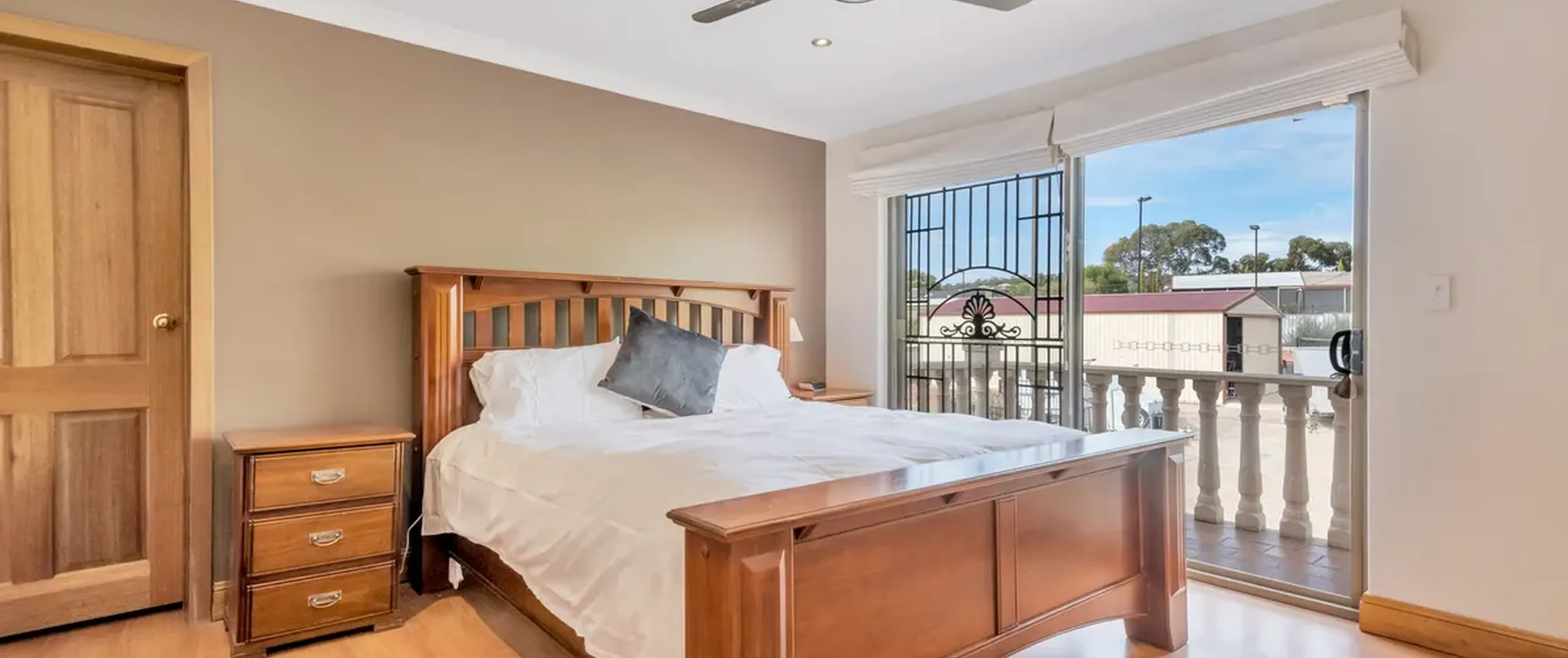 - Large master bedroom with ceiling fan, walk-in robe, renovated ensuite with double vanities and private balcony