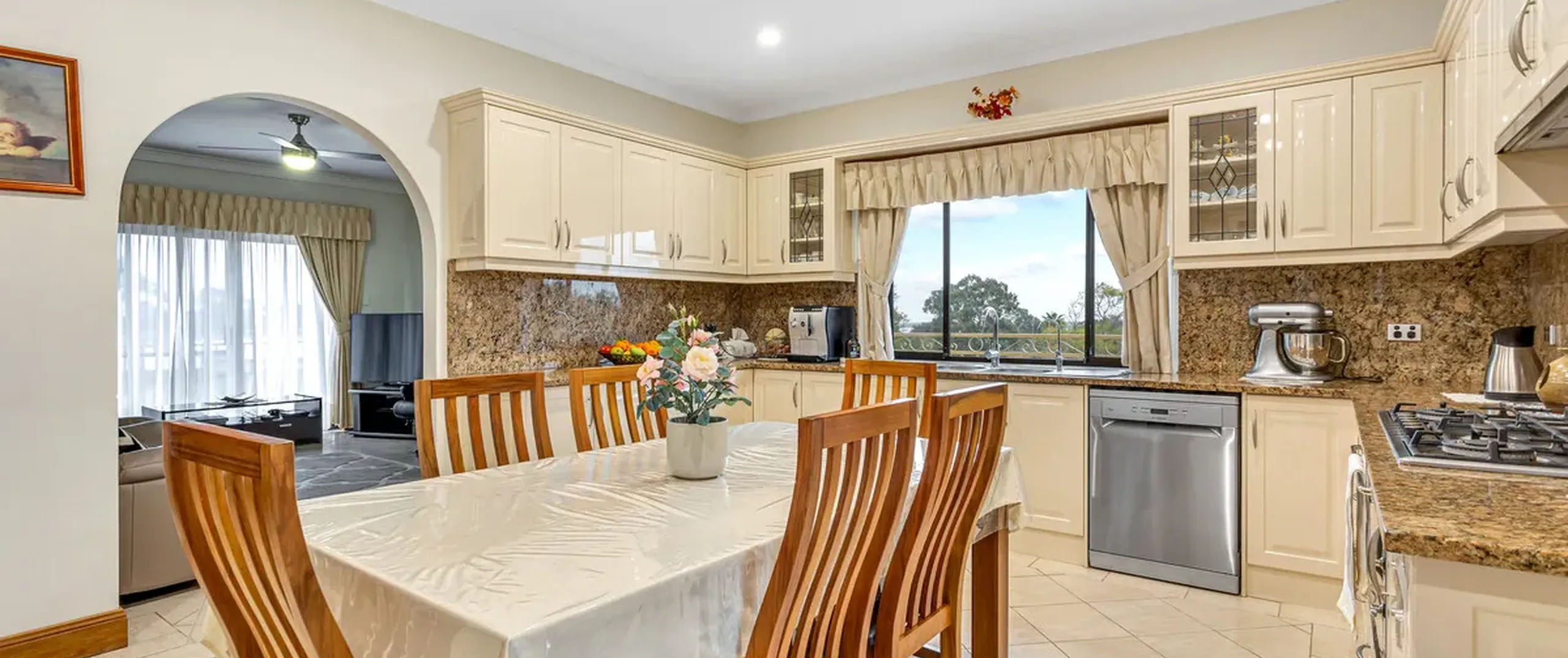 - Updated U-shaped kitchen, featuring; granite benchtop & splashback, profile joinery doors, double sink and stainless steel appliances
