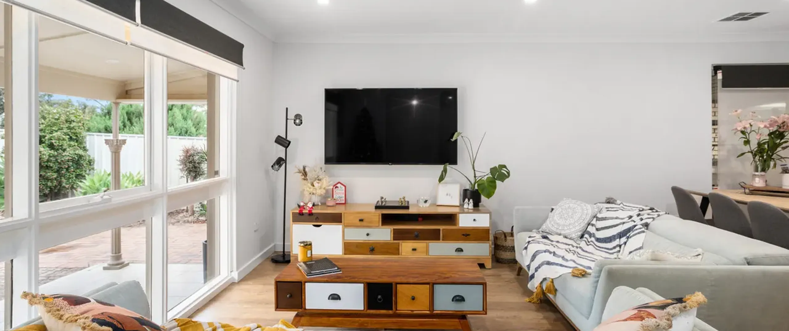 Outside comprises a generous undercover outdoor area that overlooks the lawn, making the perfect space to entertain with family and friends. Additionally offering a double length carport and extended pergola.