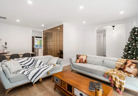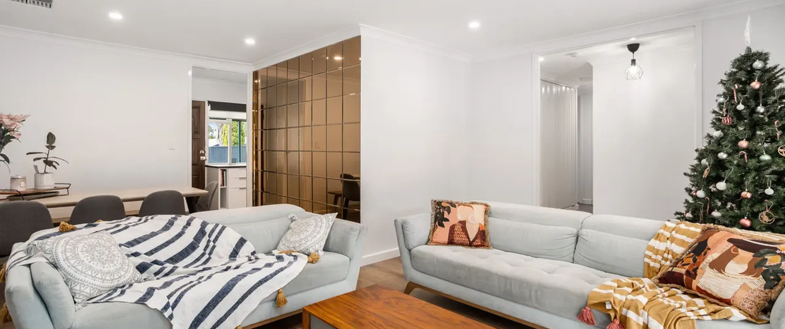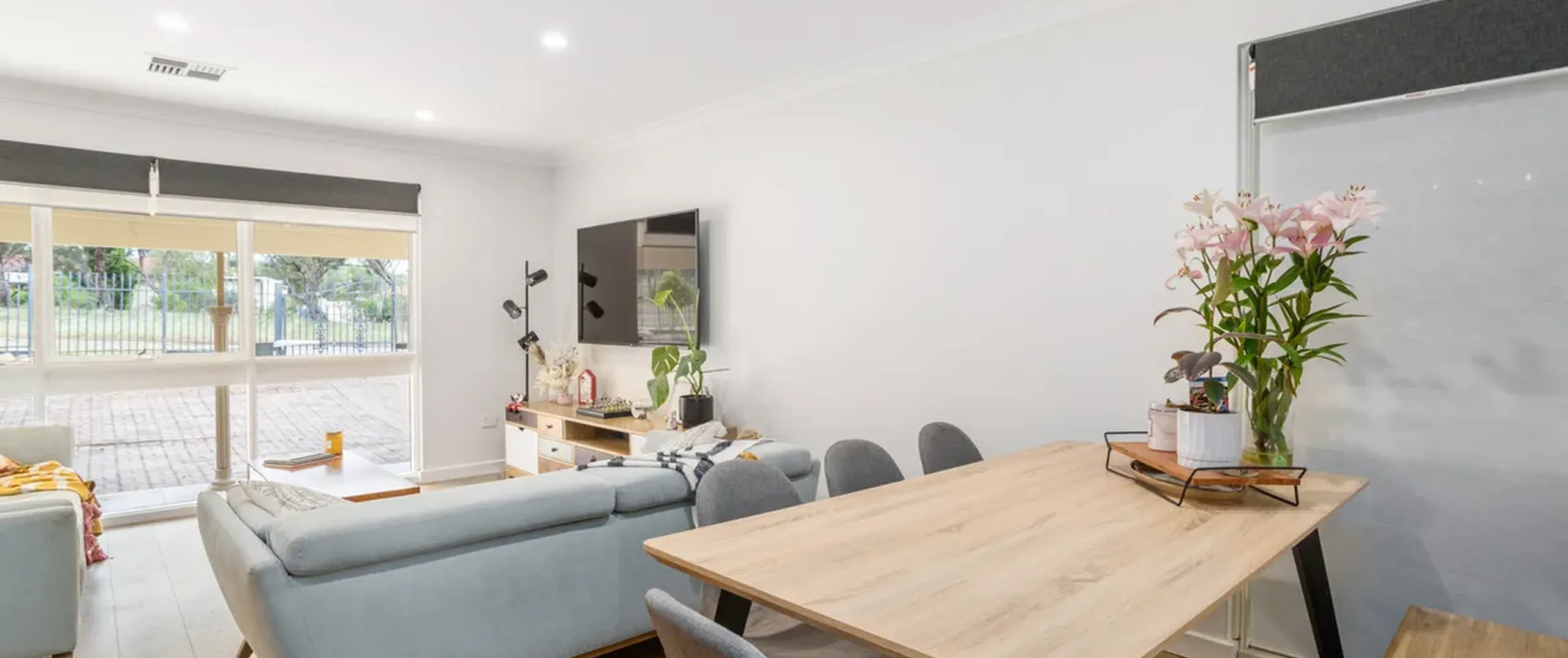 - Open plan dining and living area flooded with natural light from the triple length windows