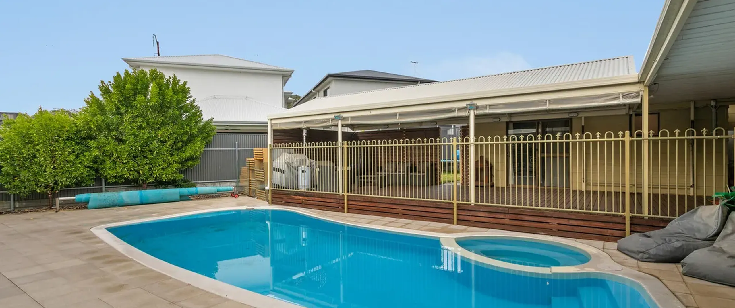 - Large backyard with a sparkling in-ground swimming pool/spa