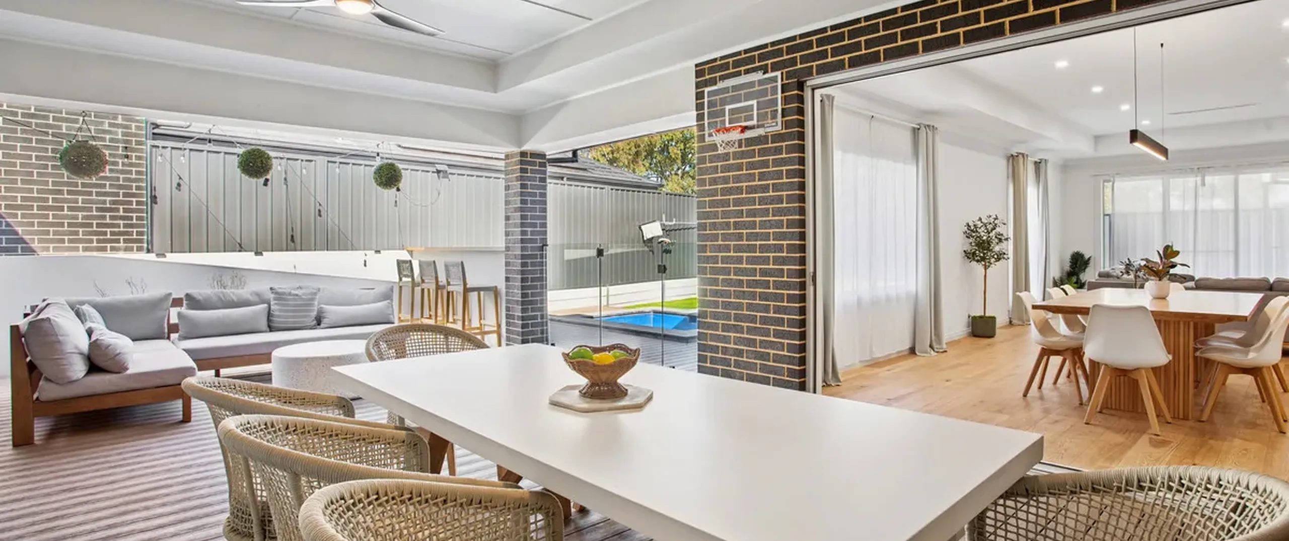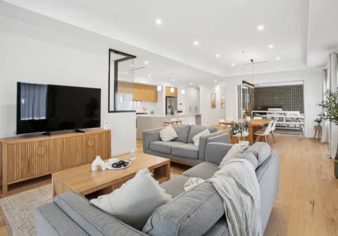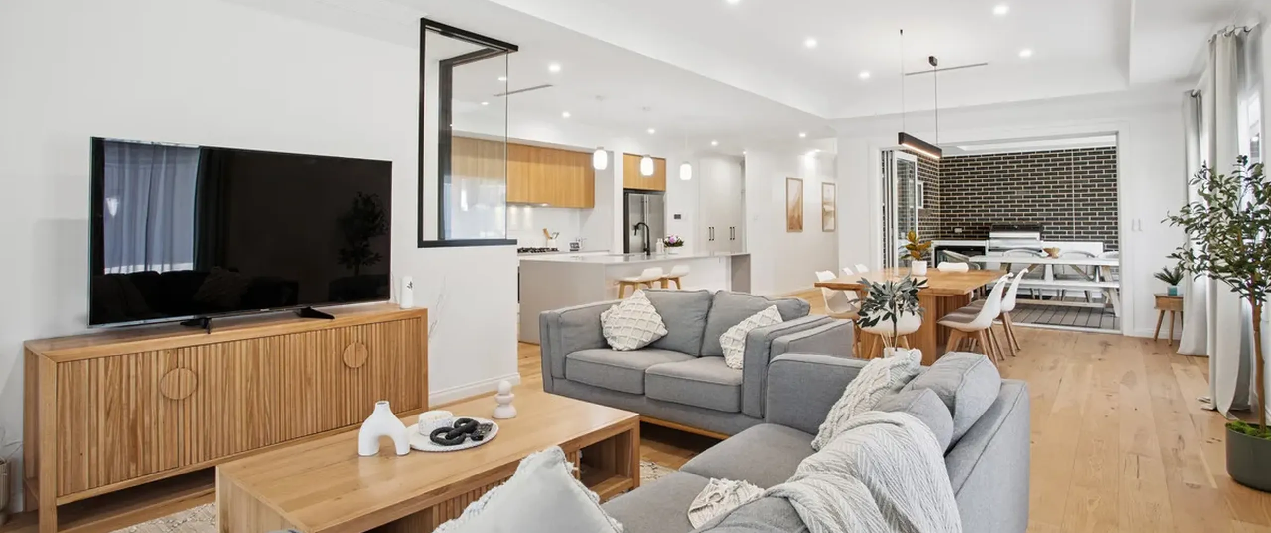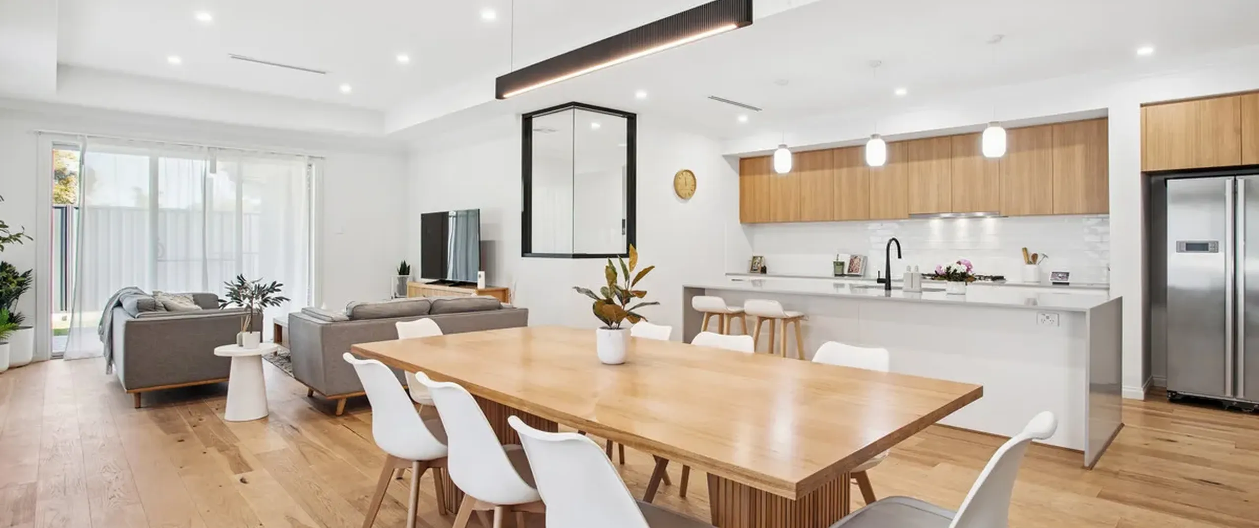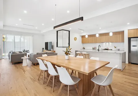 - Divine open-plan living, dining and kitchen area featuring gorgeous feature pendant lighting