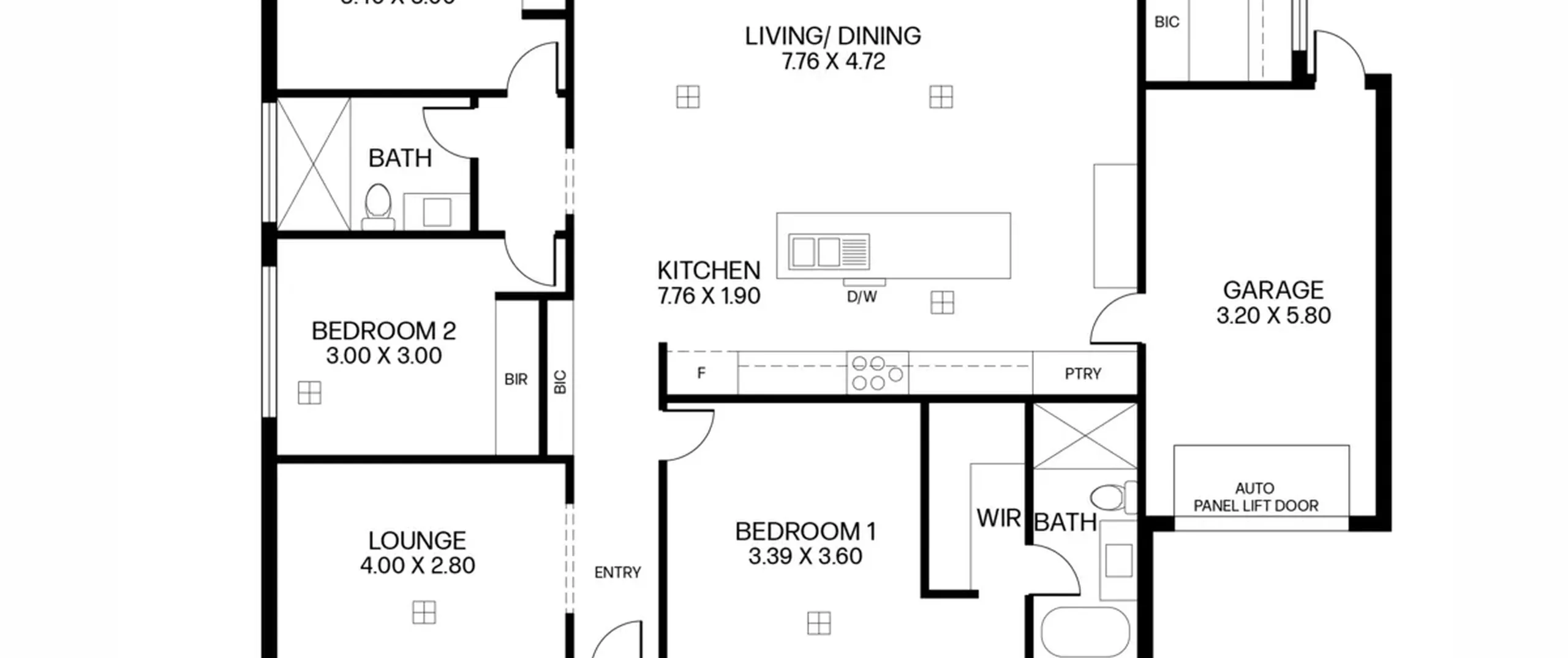 - Single garage with automatic panel lift door, plus internal and external pedestrian access
