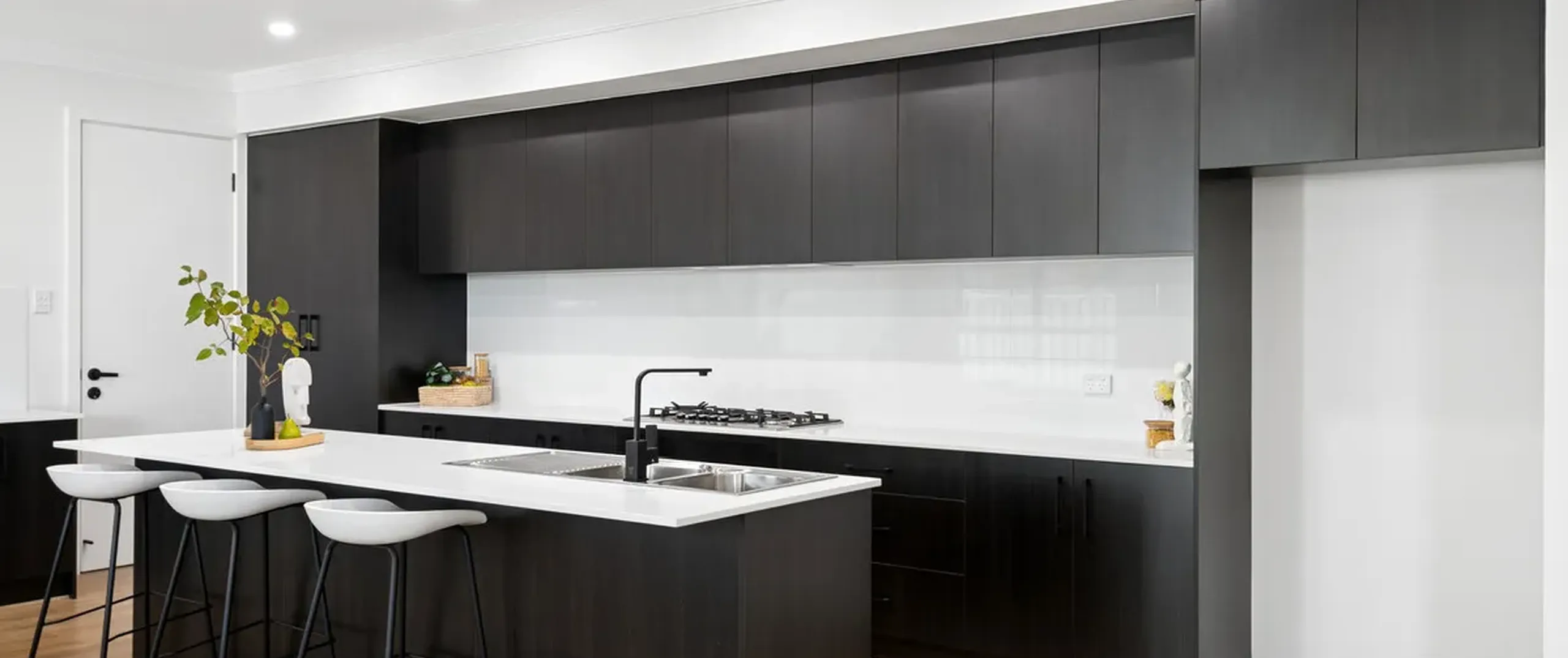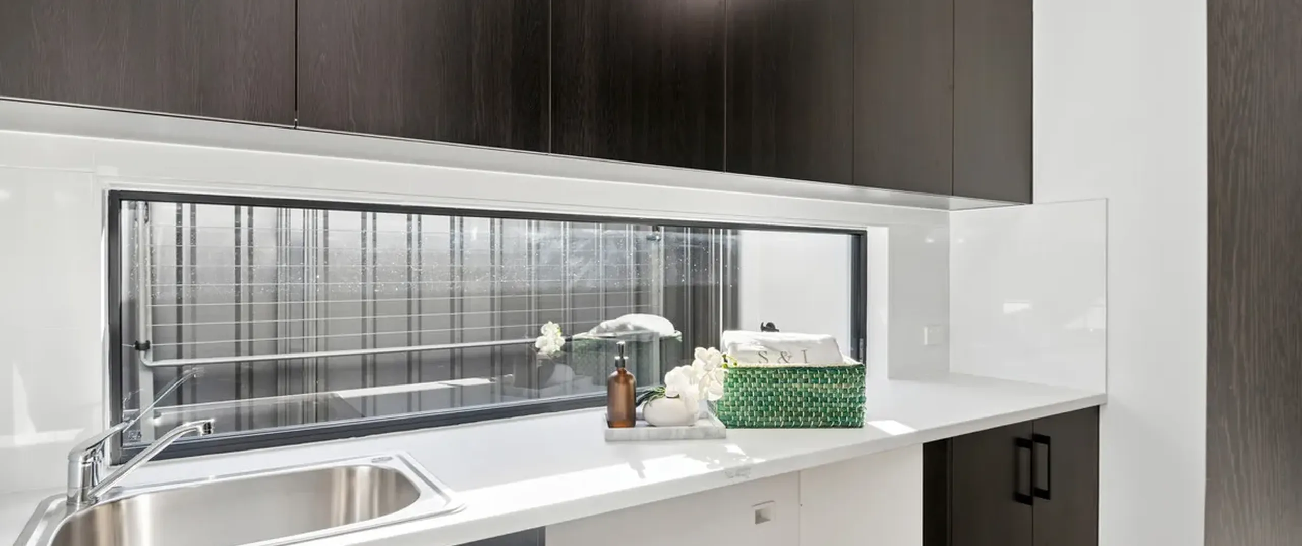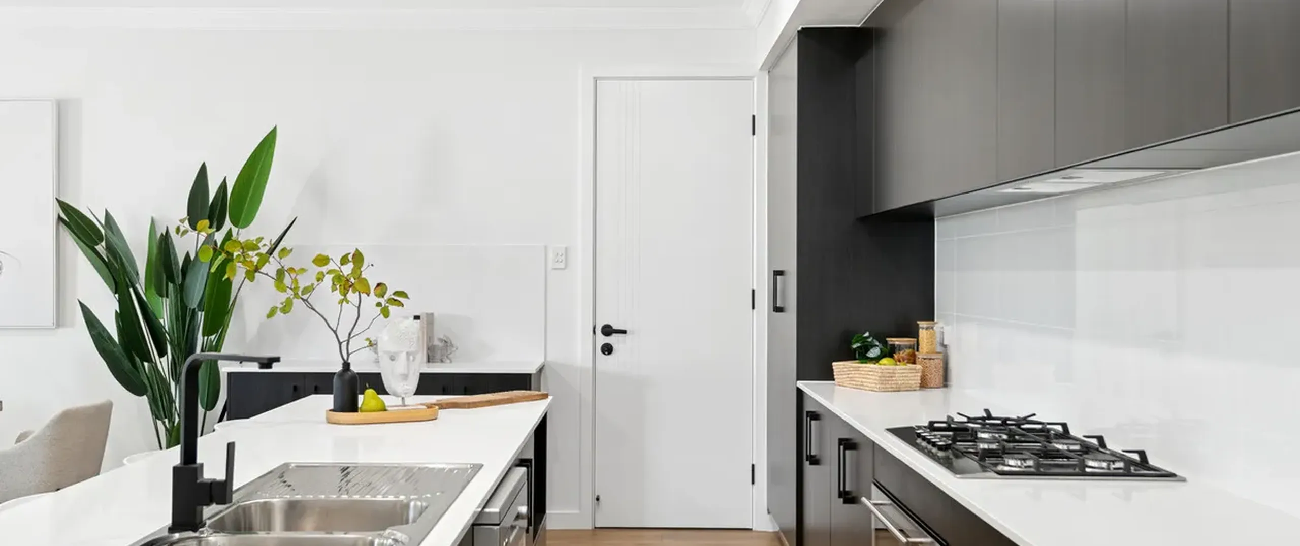 - Open-plan kitchen, dining and family area bathed in natural light, with dual sliding doors leading to the outdoor entertaining area
