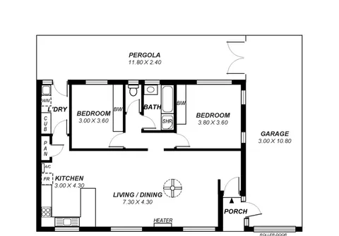 - Spacious, light filled open plan living/dining area with ceiling fan and heater for year round comfort