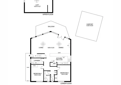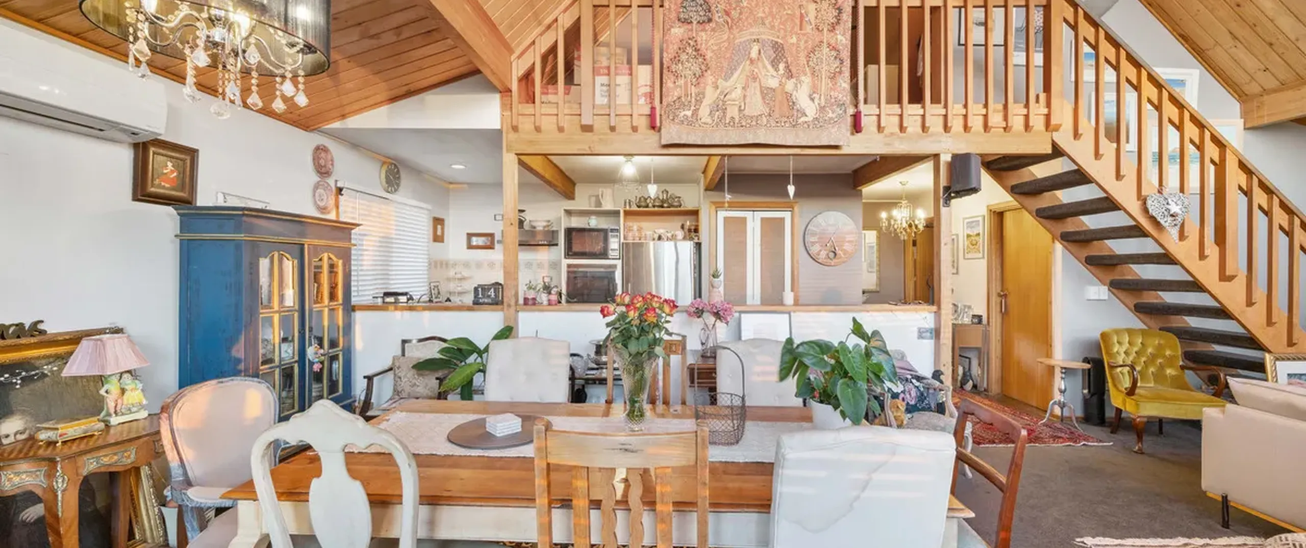 - Master loft retreat with pitched ceiling, ceiling fan, ocean-facing windows, private ensuite with rain shower, and a walk-in robe that can double as a home office