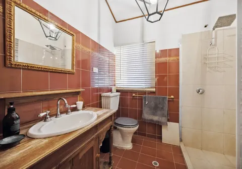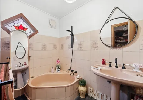 - Main bathroom featuring a relaxing corner bath and separate toilet for added functionality