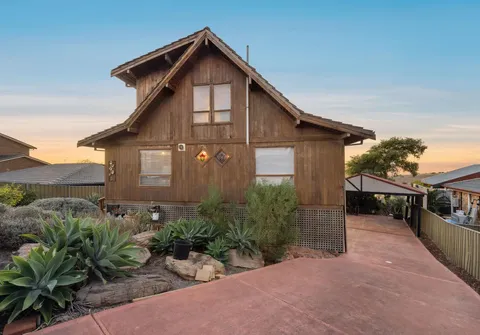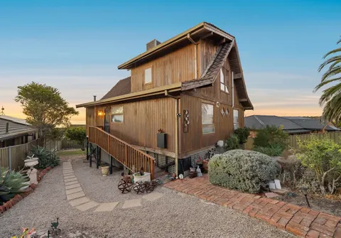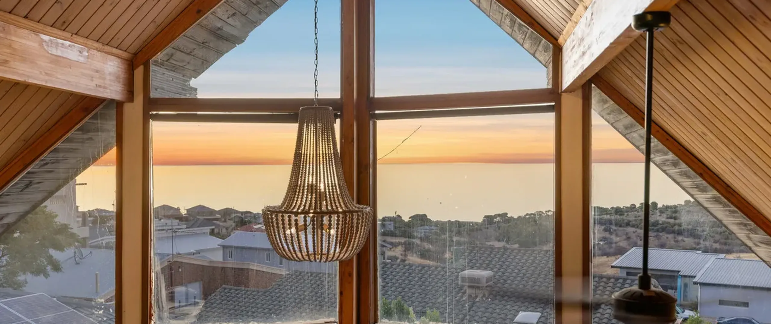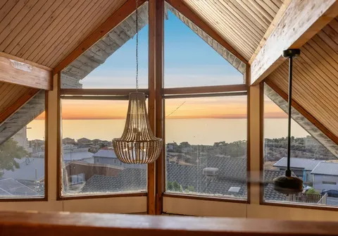 Discover coastal living in this beautifully designed home in the highly desirable seaside suburb of Hallett Cove. Ideally positioned on a generous 615 sqm (approximate) allotment with an impressive 17.5m (approximate) frontage, it showcases spectacular 180-degree ocean views through expansive floor-to-ceiling windows. Made of Western Red Cedar and full of character with its pitched roof and timber-panelled ceilings, this residence combines timeless charm with an enviable coastal lifestyle.