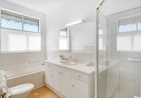 - Large master bedroom with ensuite comprising a separate bath and shower, 2 separate built-in robes and built-in cupboard