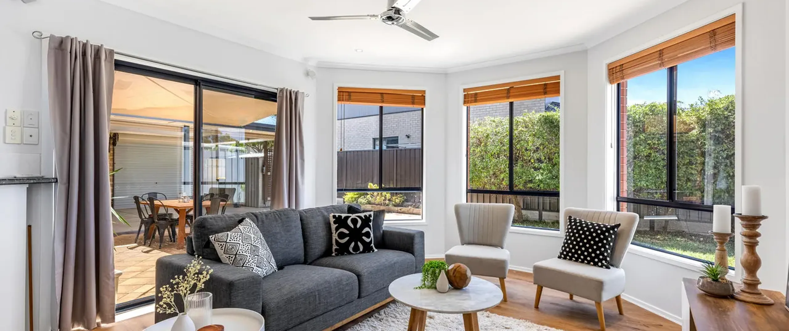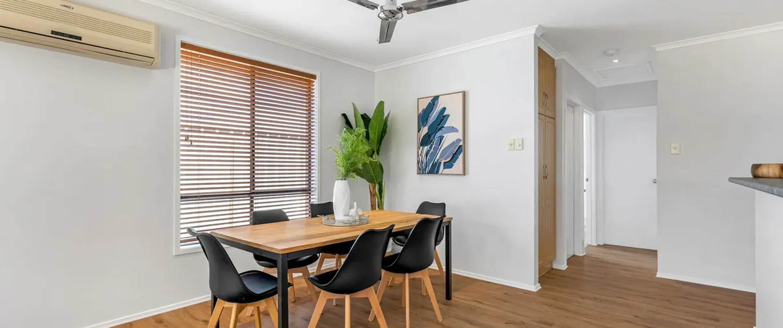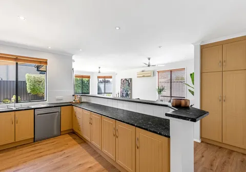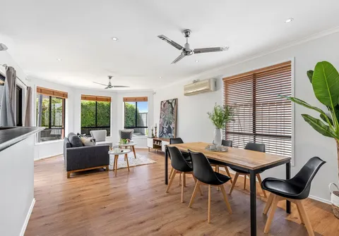- Commodious open plan family and dining with split system air conditioner, ceiling fans and an abundance of natural light