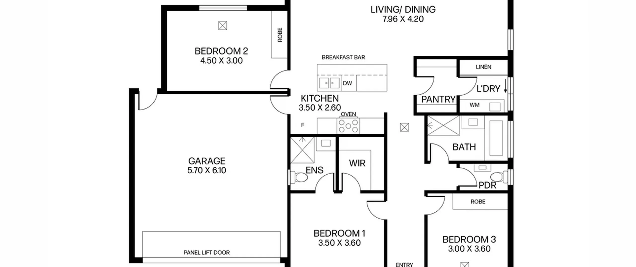 - Double garage with panel lift door and external access