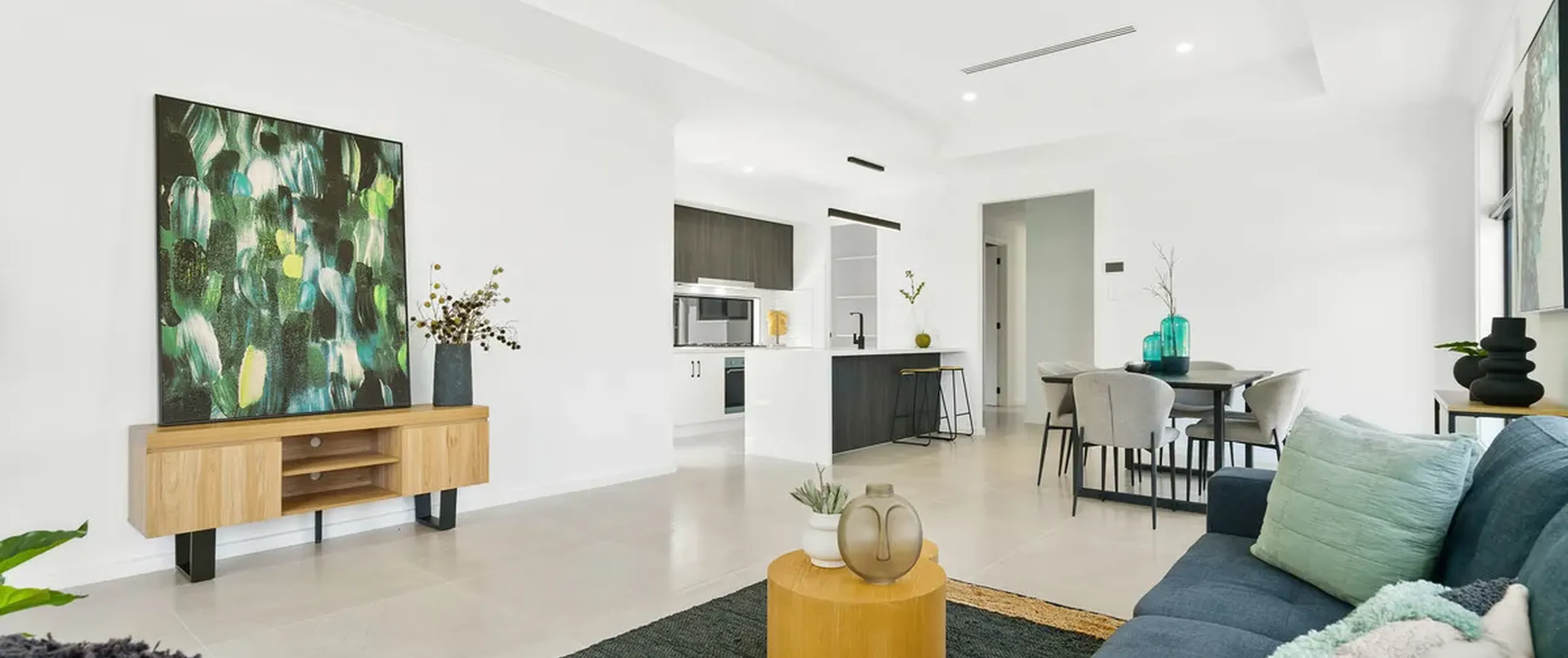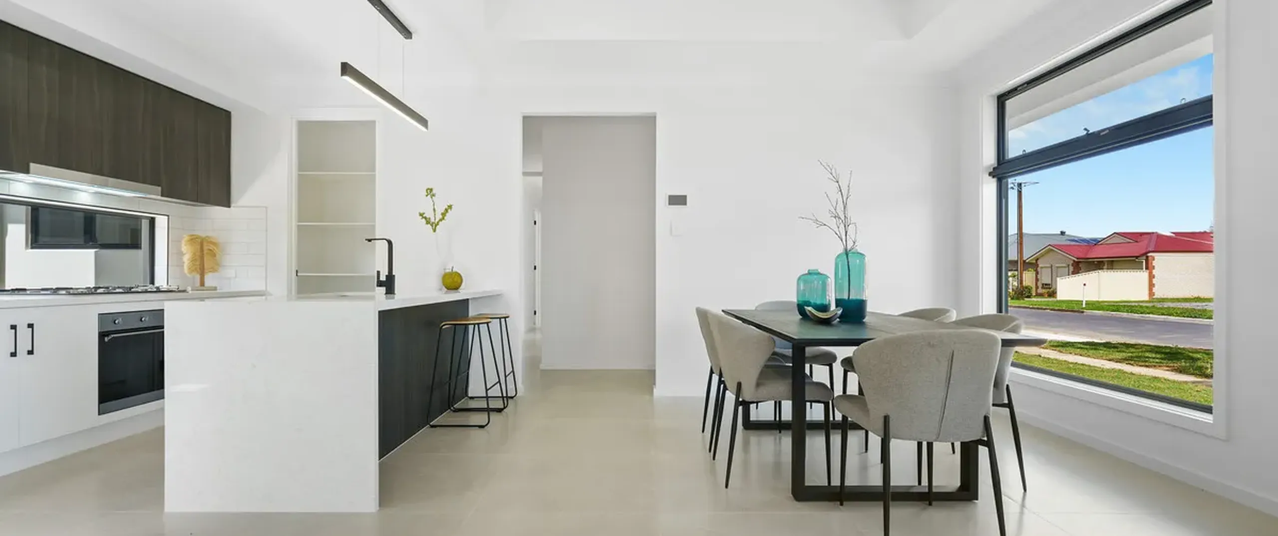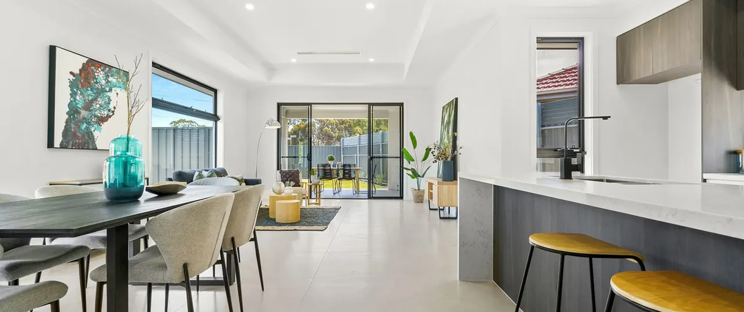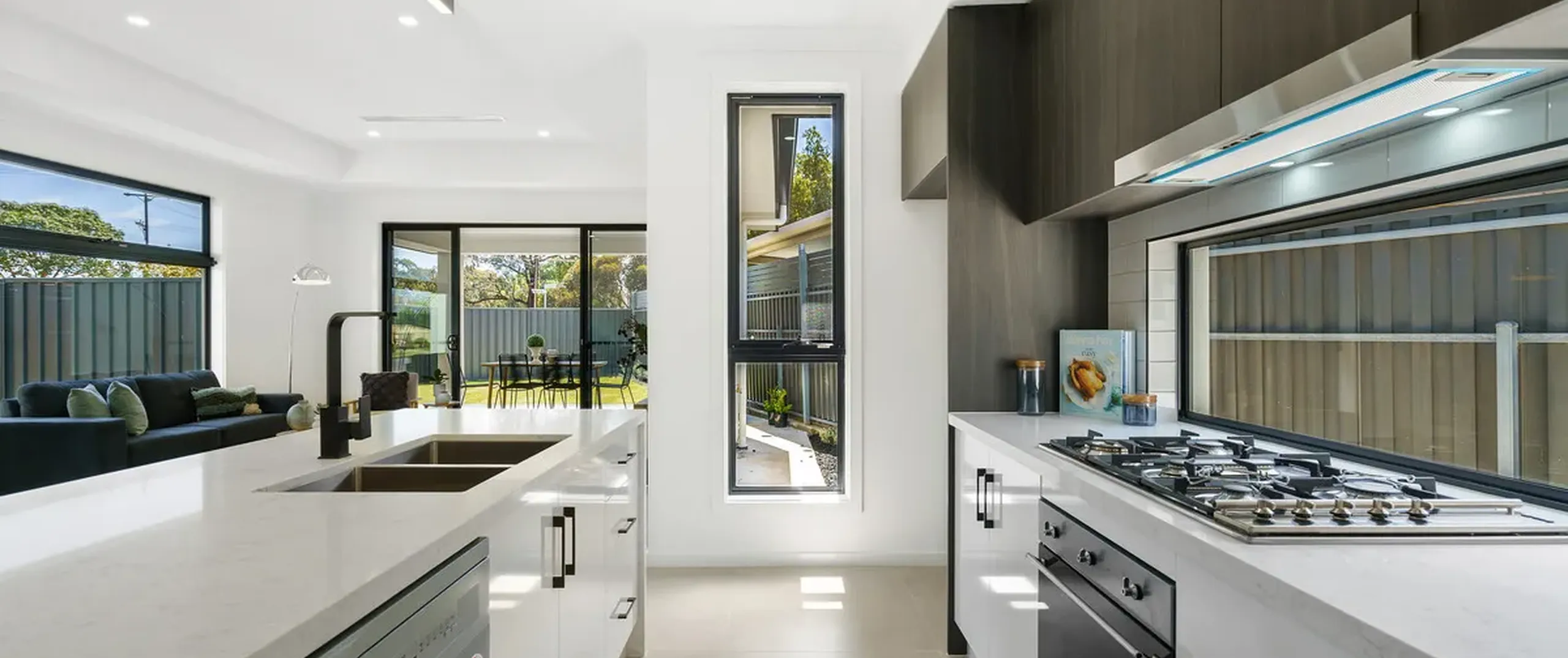 - Bright open-plan living, kitchen and dining with tiled flooring, recessed ceiling, LED downlights and glass sliding doors flowing seamlessly to the alfresco