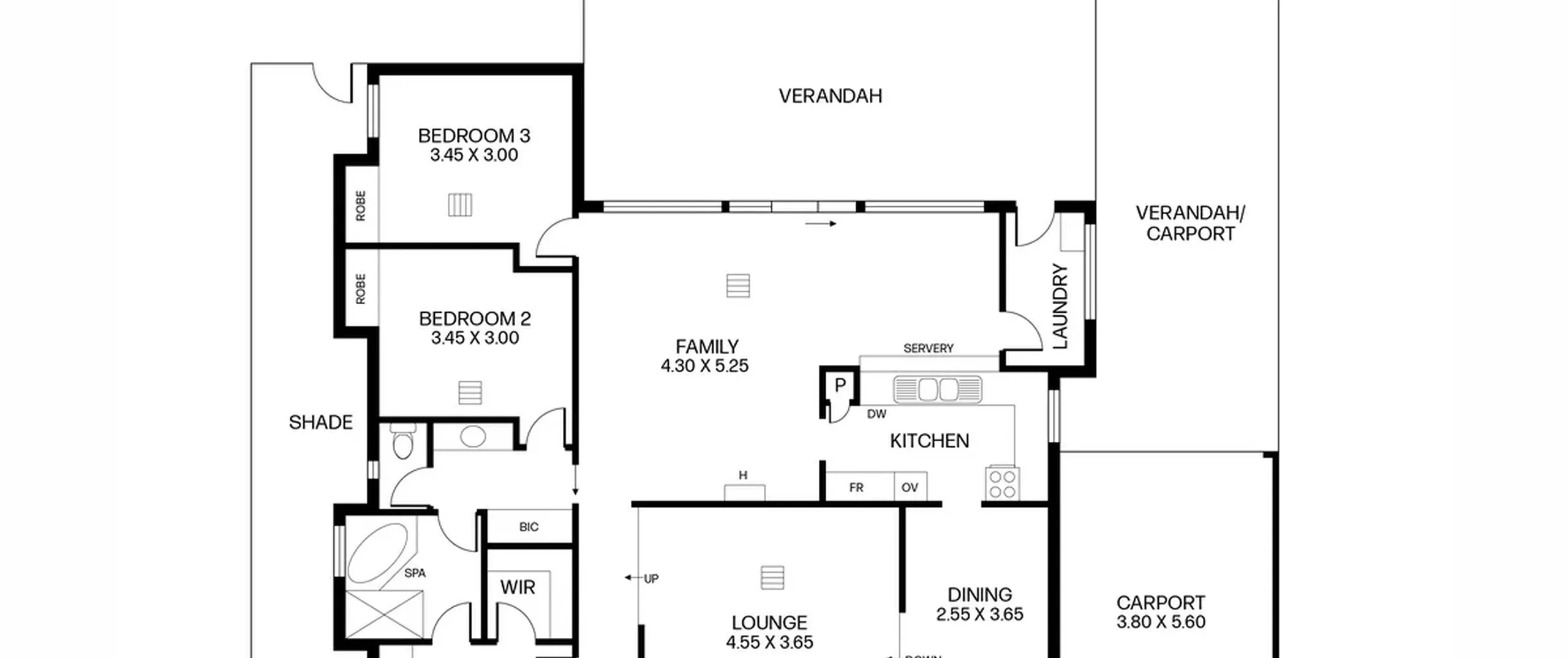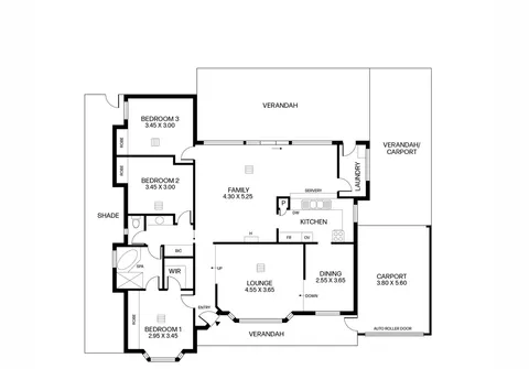 - Carport parking for 2 vehicles with automatic roller door