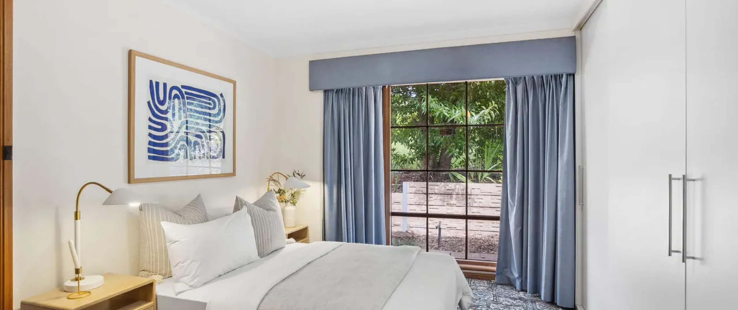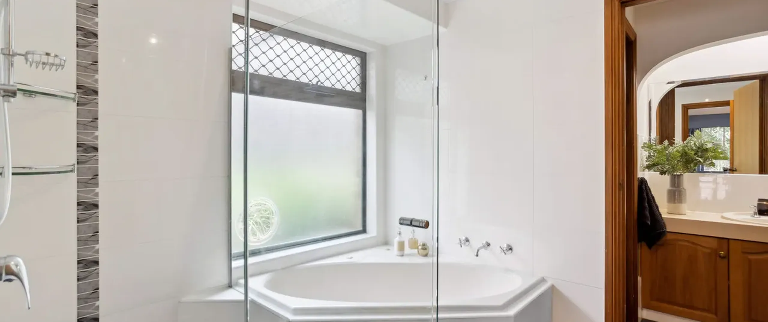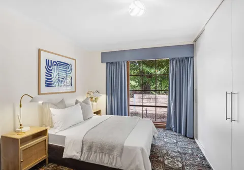 - Master bedroom with walk-in robe, built-in robe, bay window and access to main bathroom