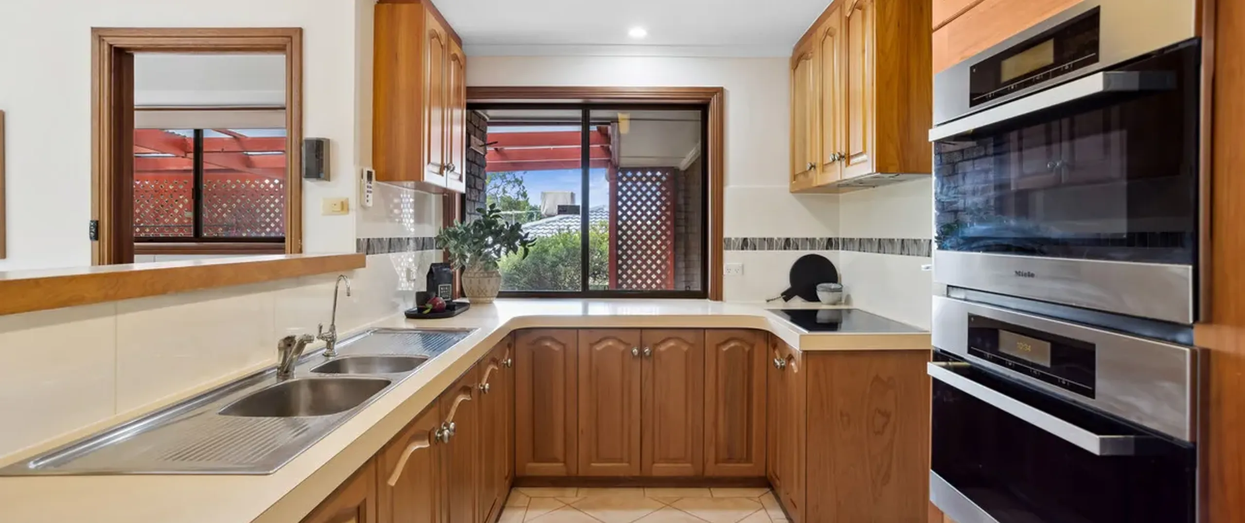 - Kitchen with Miele induction cooktop, steam oven, convection microwave oven and Fisher Paykel 2 draw dishwasher