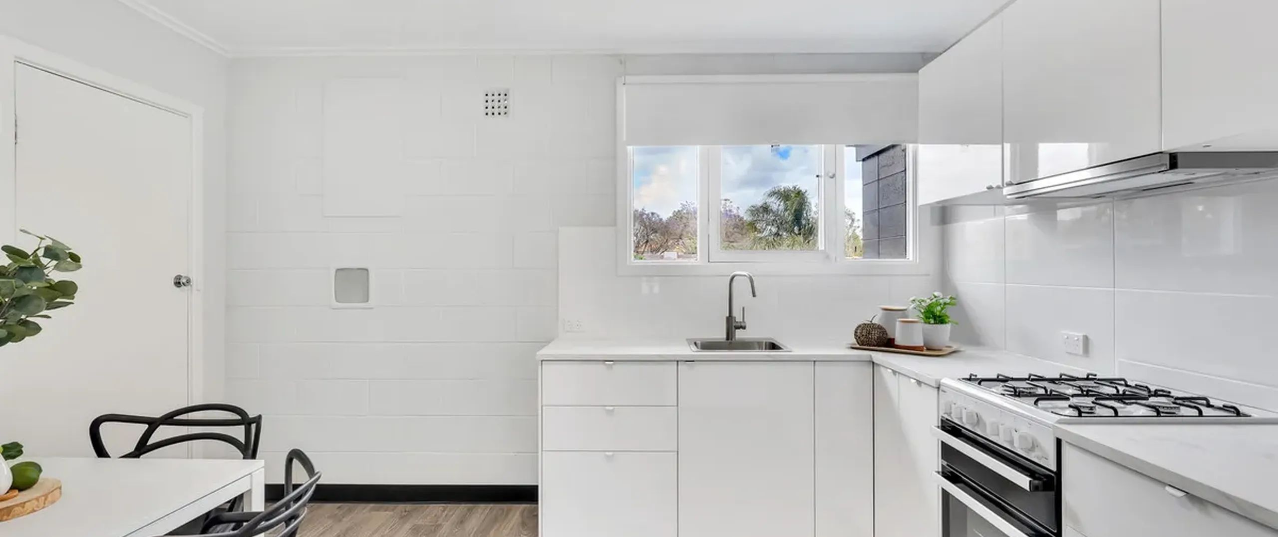 - Brand new eat-in kitchen with gas cooktop and ample cupboard space