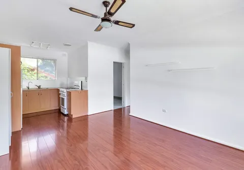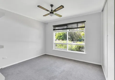 - Open plan living and meals area adjacent to kitchen with ceiling fan and split system air conditioner