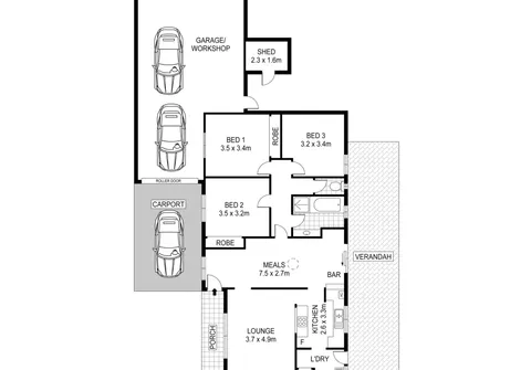 - Lock up fully enclosed single carport + 2 car garage/workshop