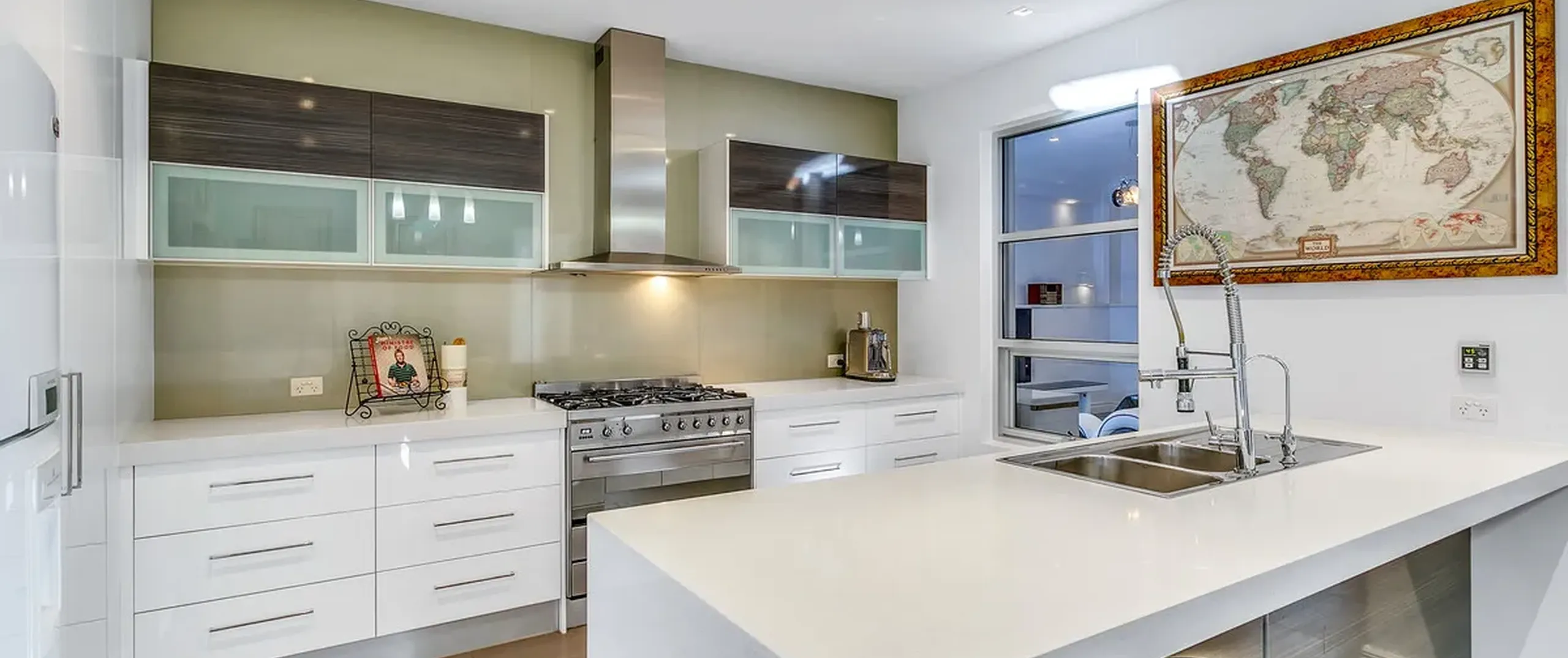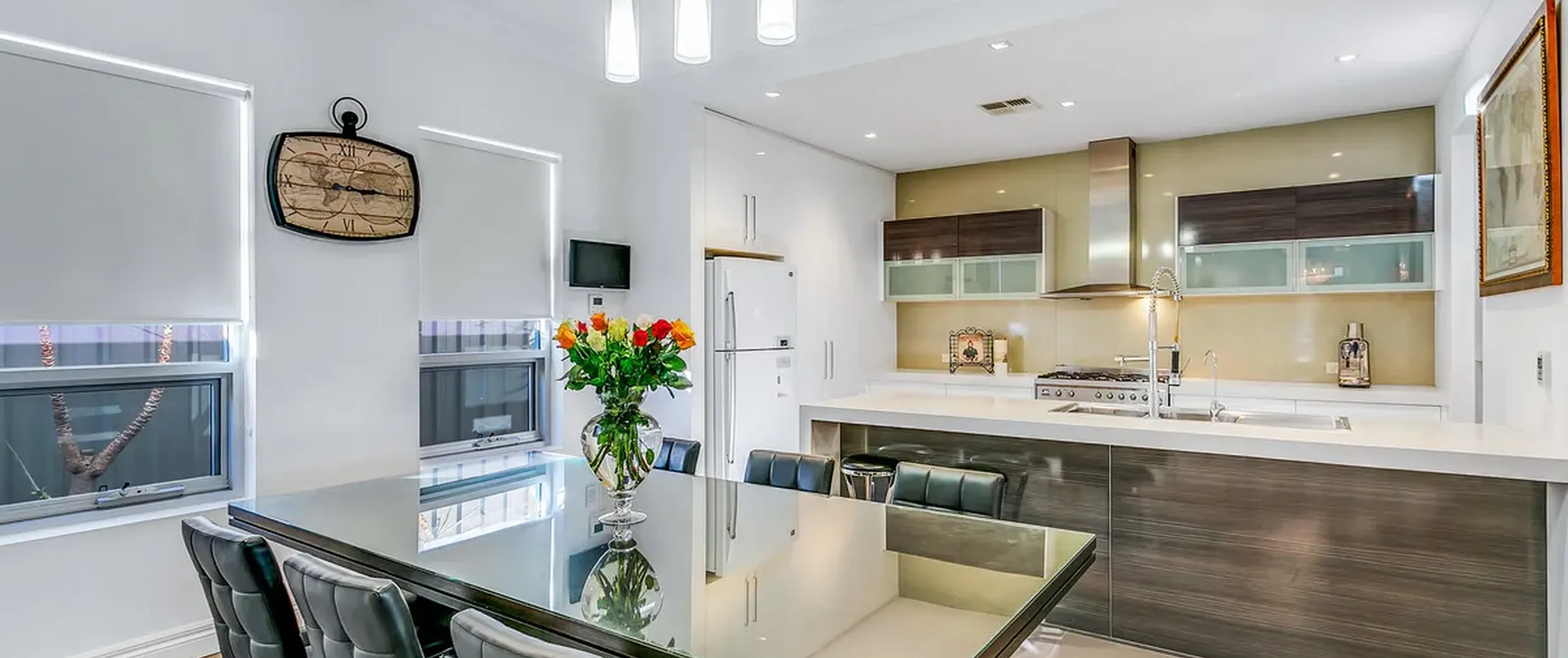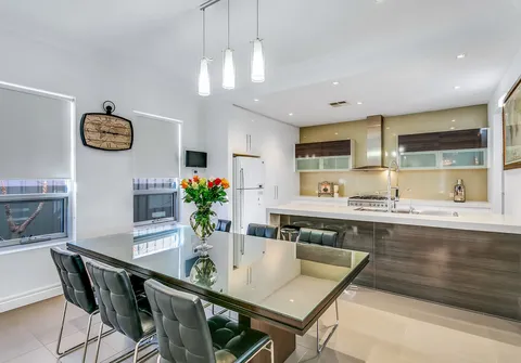 - Stylish kitchen with stainless steel appliances, 900mm freestanding gas cooktop, dishwasher, ample bench and cupboard space and breakfast bar