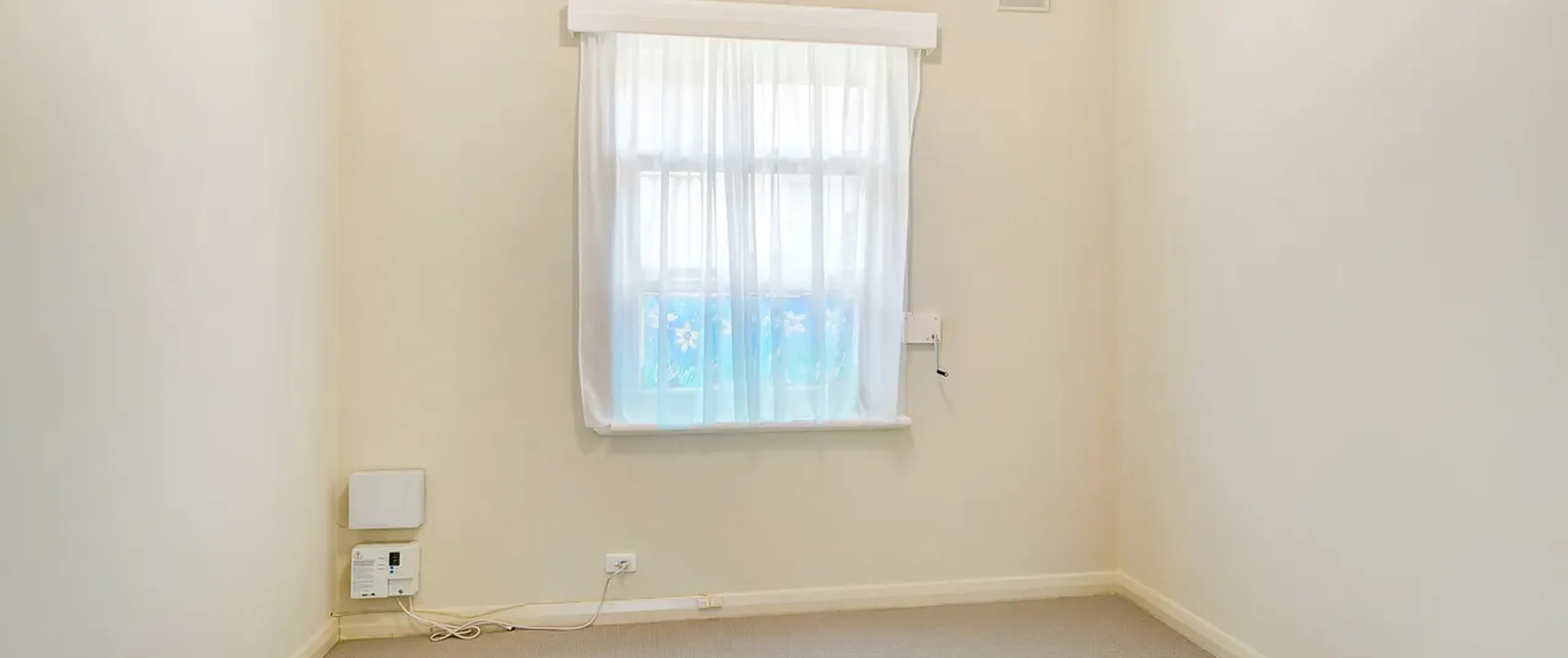 - Light filled formal lounge room with split system reverse cycle air conditioner and electric heater