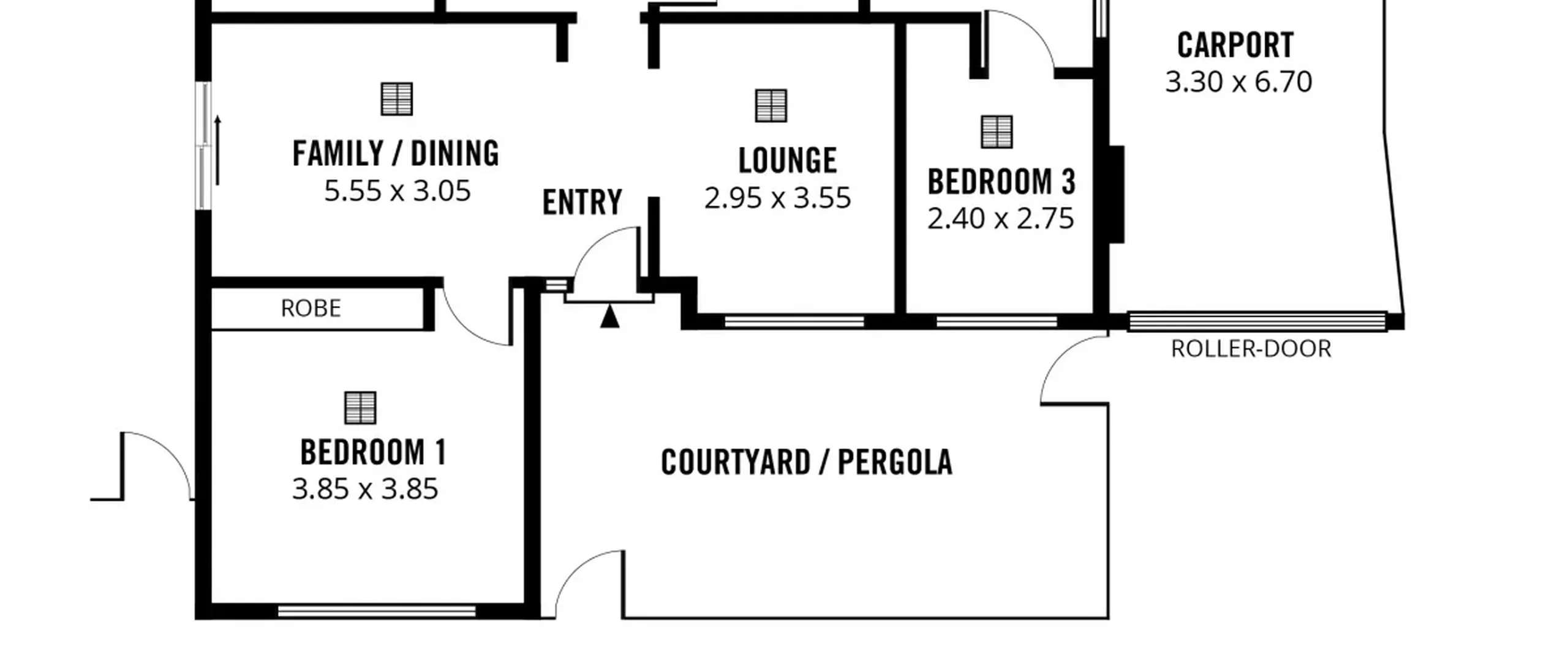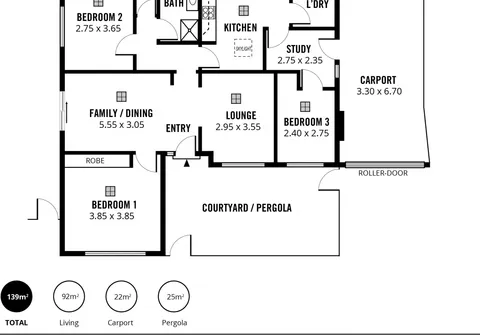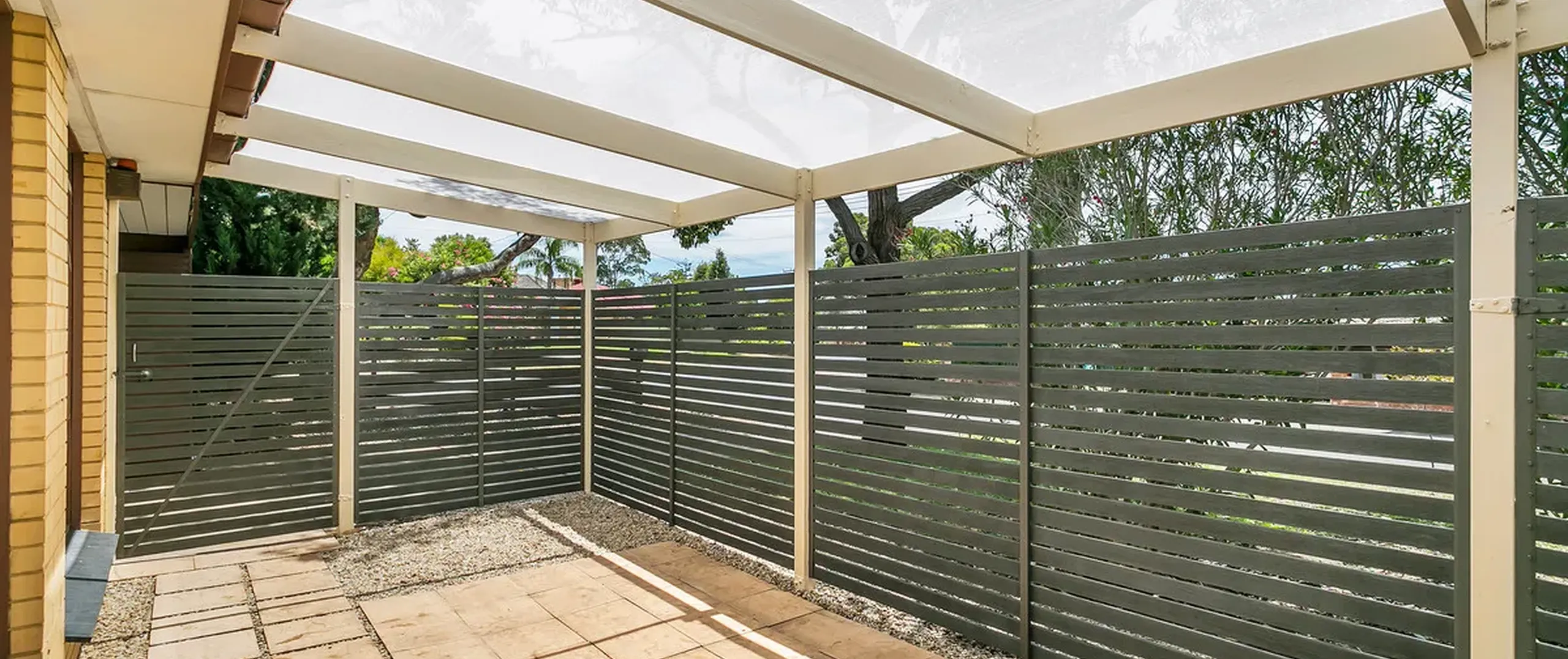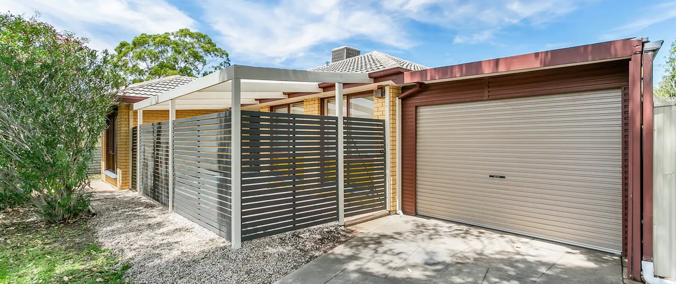 - Undercover carport with roller door for single parking with internal access
