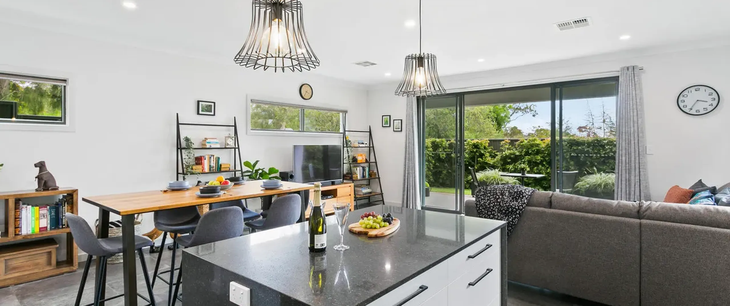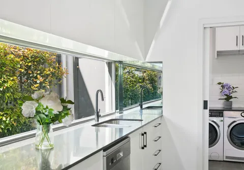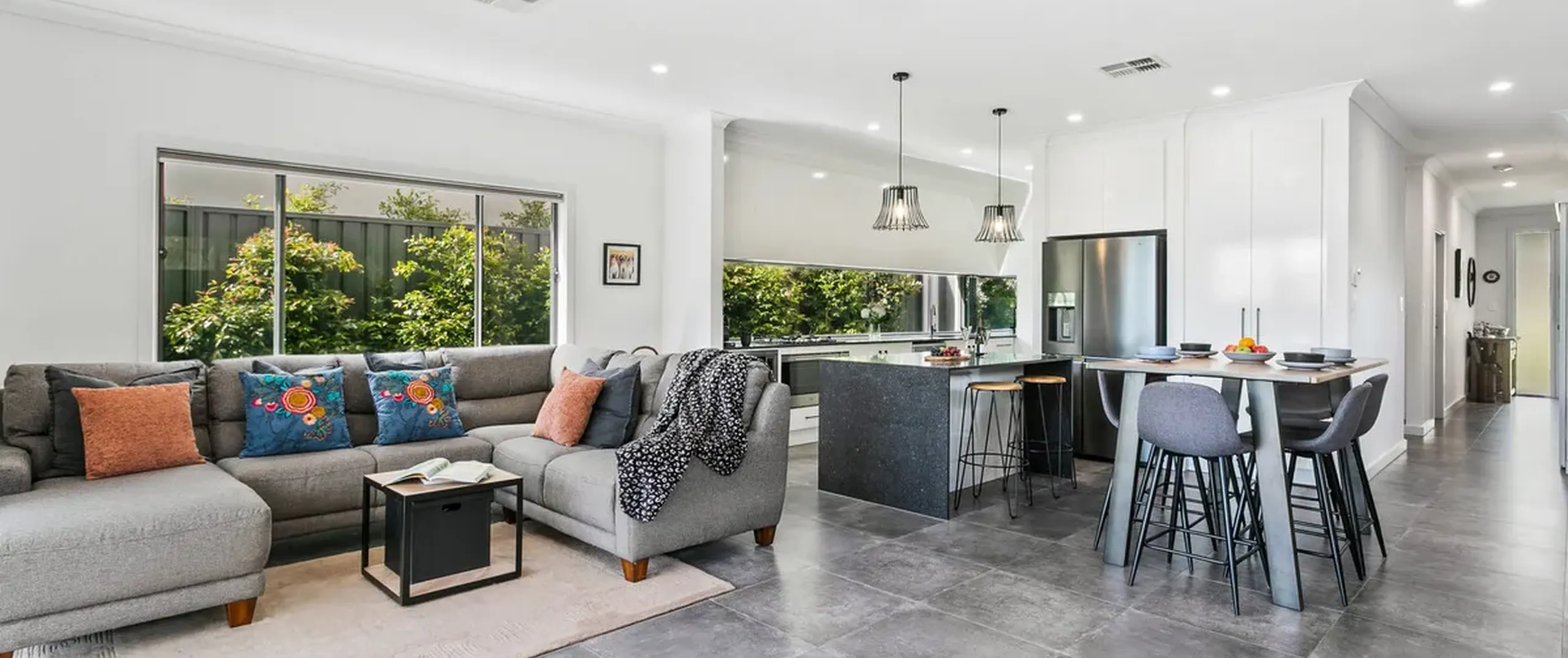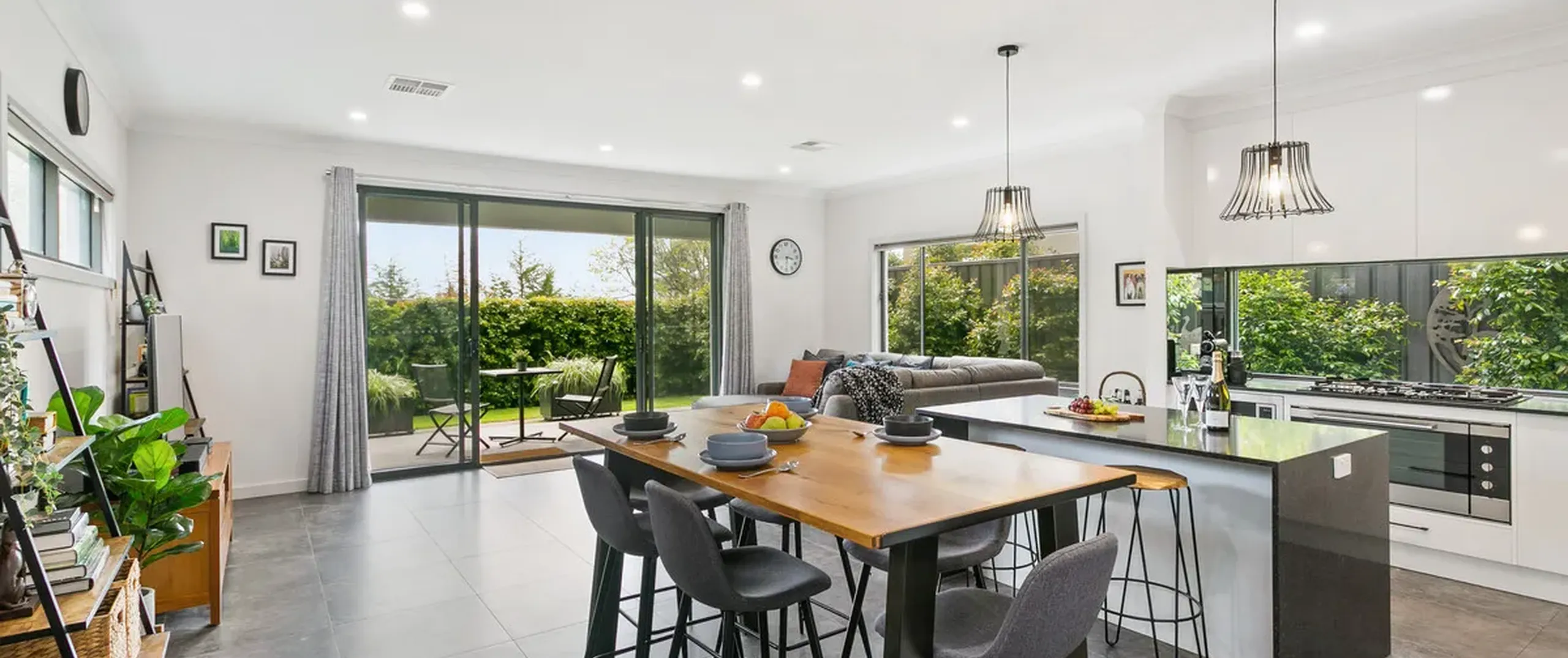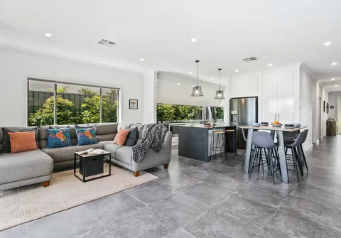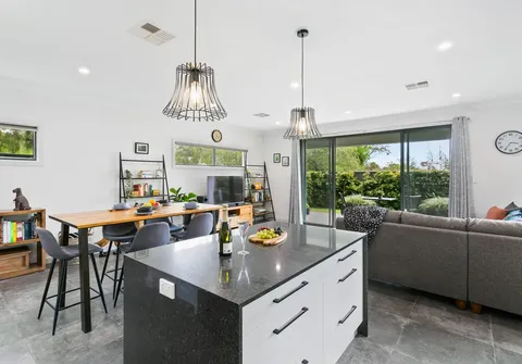 - Spacious light-filled open plan family/dining and kitchen with modern easy-care tiles throughout