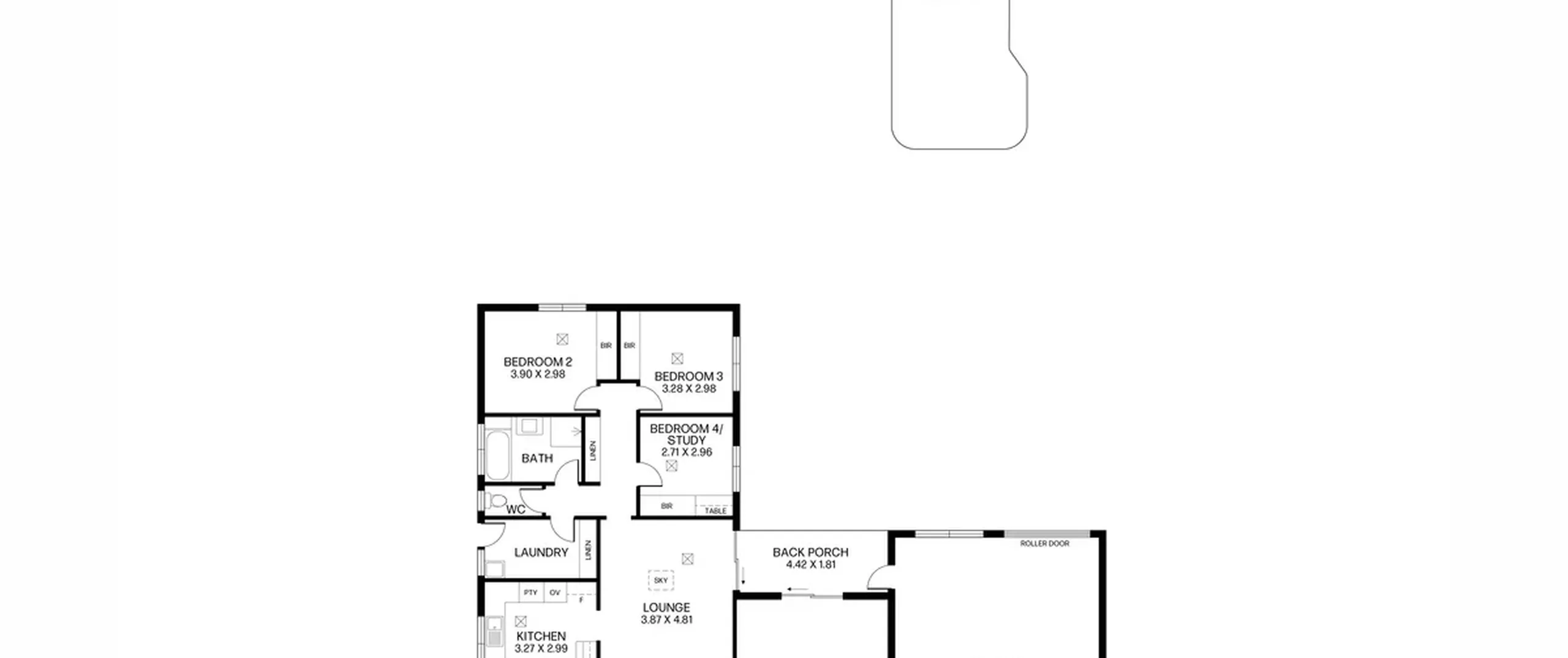 - Bedroom four or optional study with built-in robe