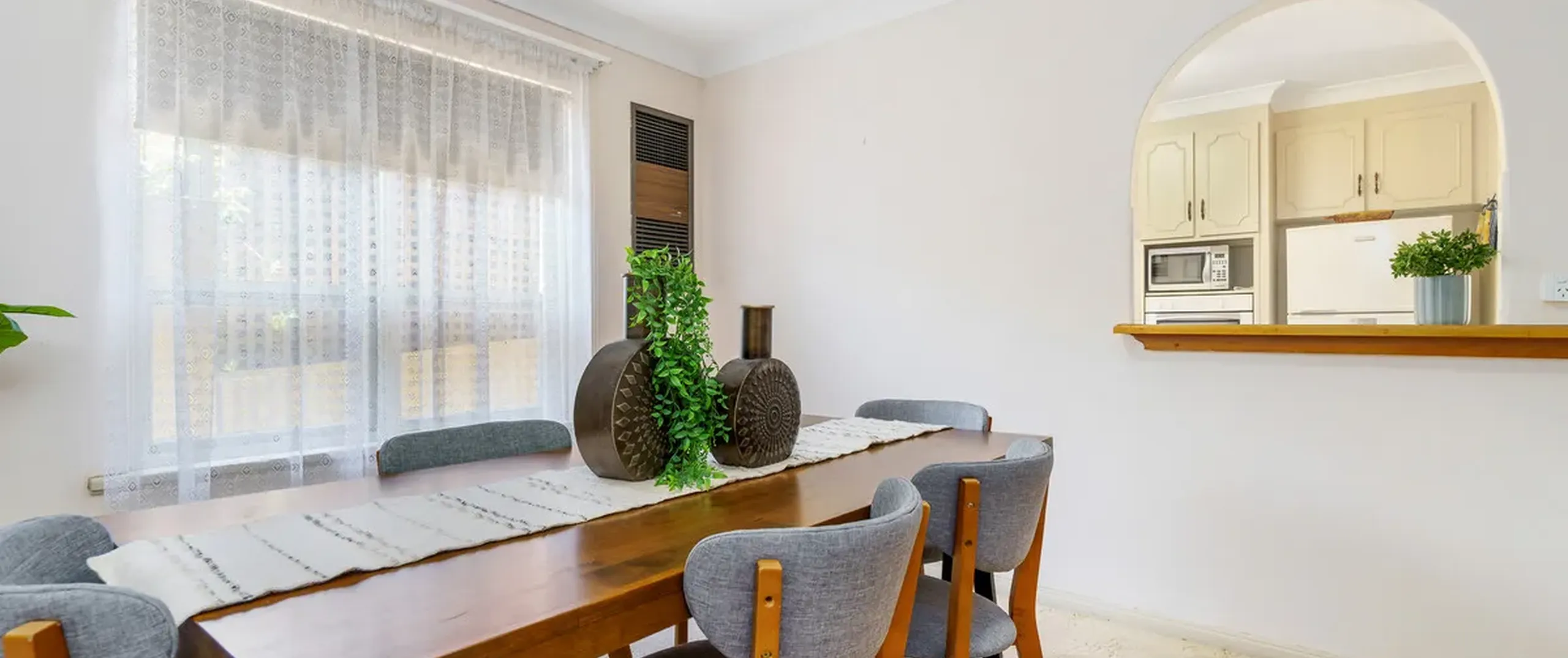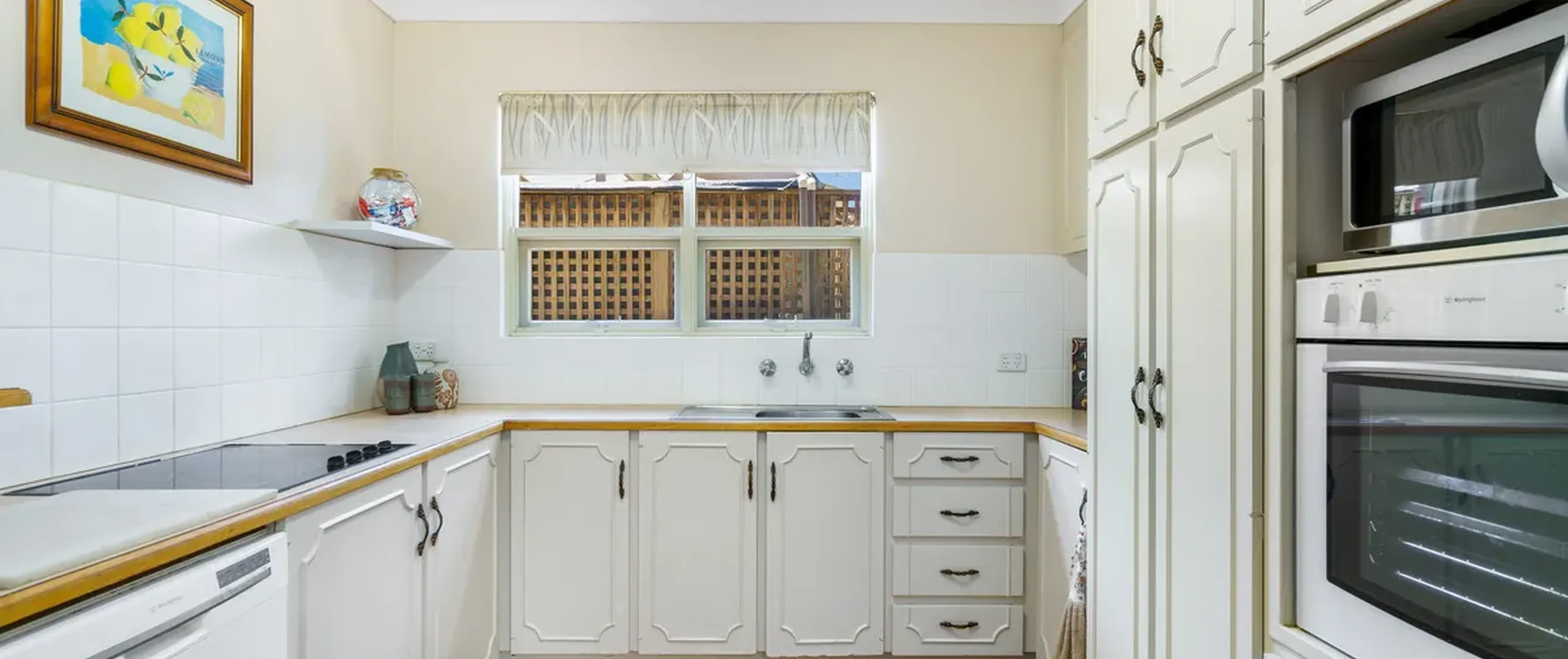 - Practical kitchen featuring ample cupboard and bench space plus servery to dining for complete convenience