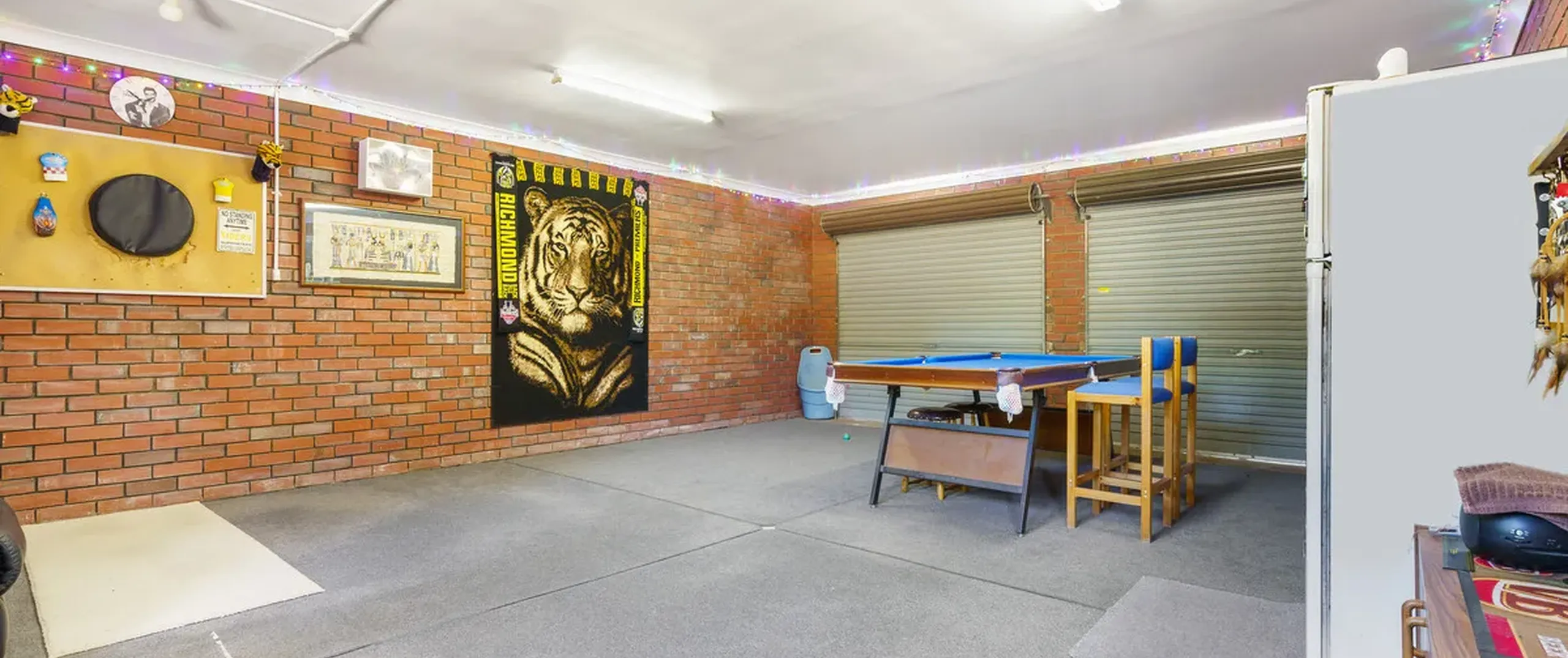 - Double garage under main roof with roller doors plus additional rear roller door for direct access to the backyard; currently utalised as an entertaining/games room