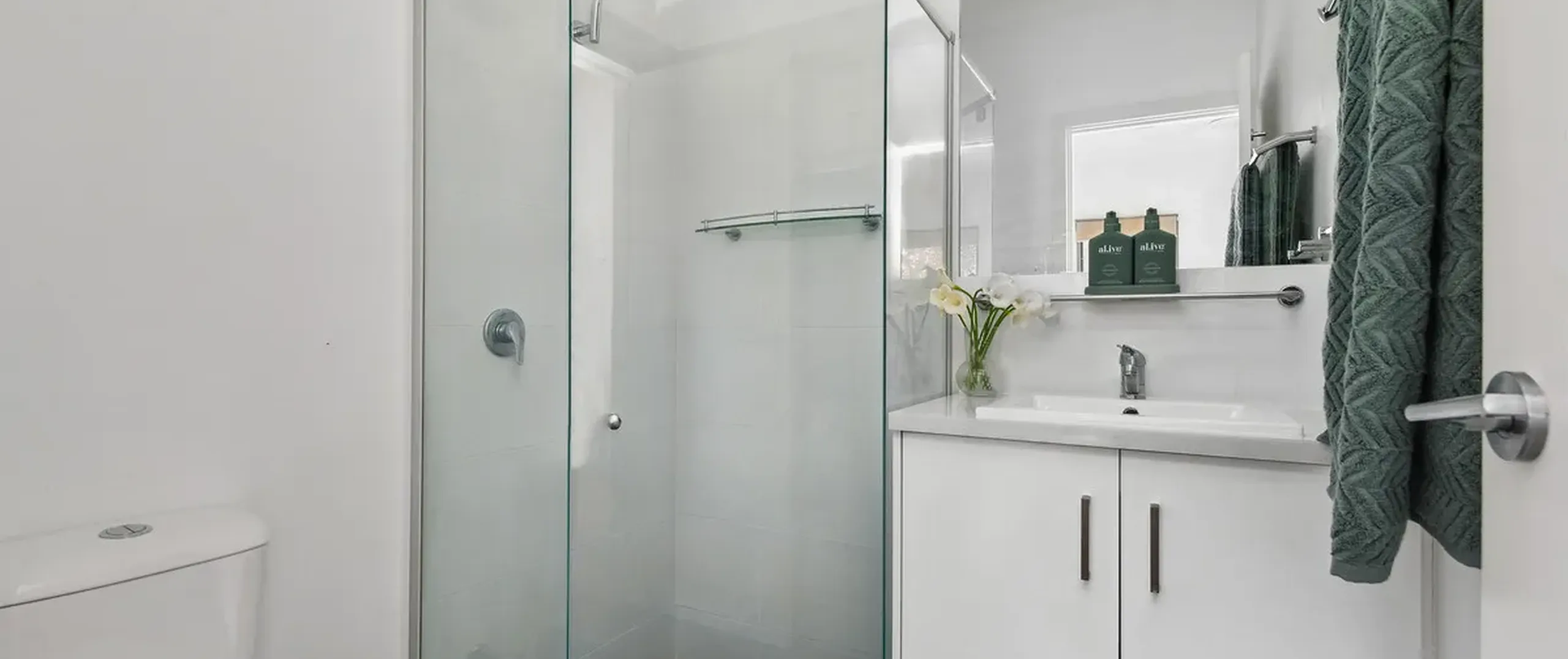 - Master bedroom complete with walk-in robe and glistening white ensuite