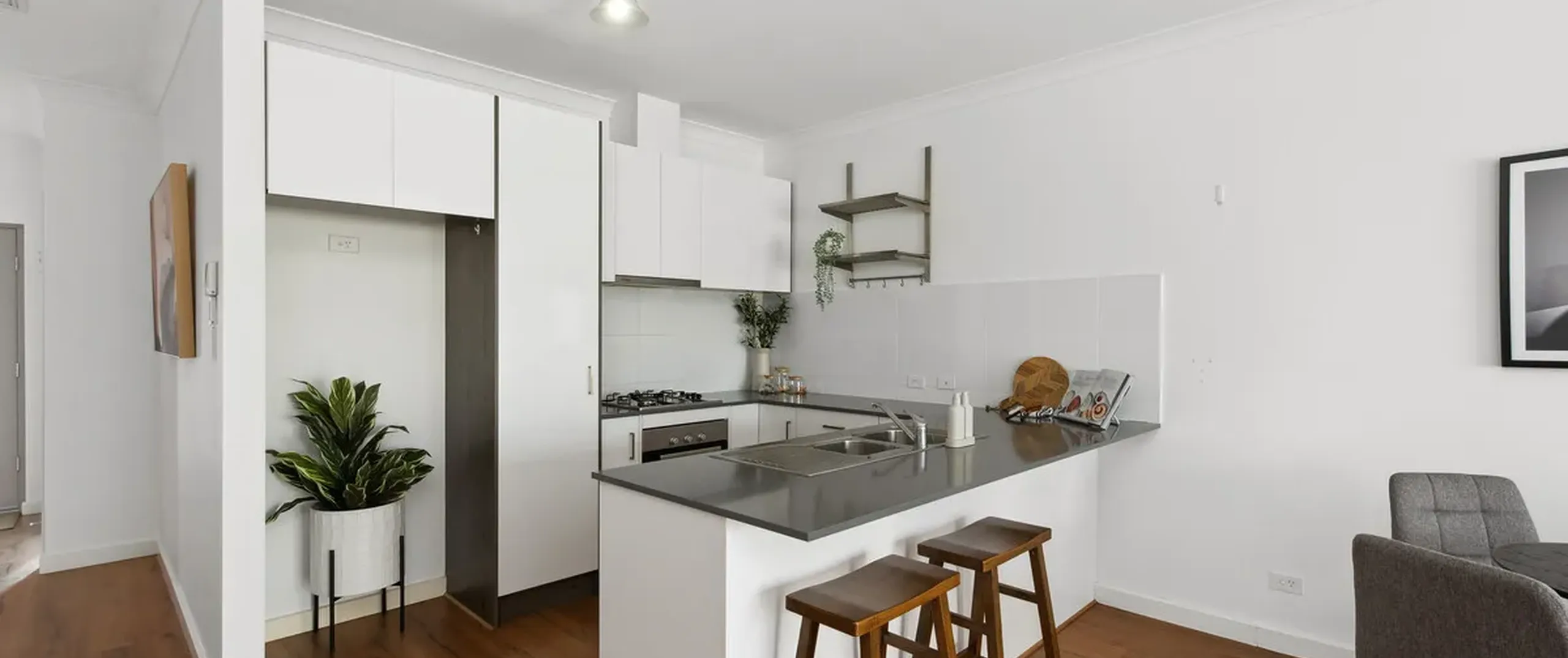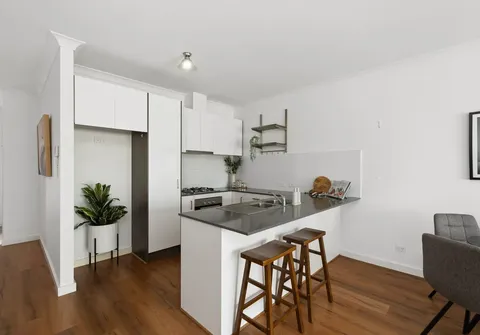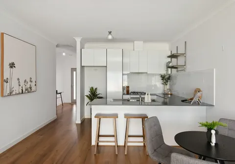 The practical design boasts three bedrooms and two-bathrooms. A large, light-filled living and dining room is nestled in the heart of the layout, where daily living and hosting memorable occasions will be a joy. An immaculate kitchen will delight the avid foodie with a gas cooktop, breakfast bar and dishwasher.