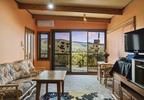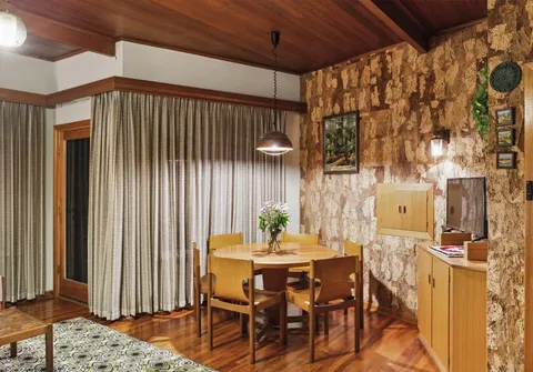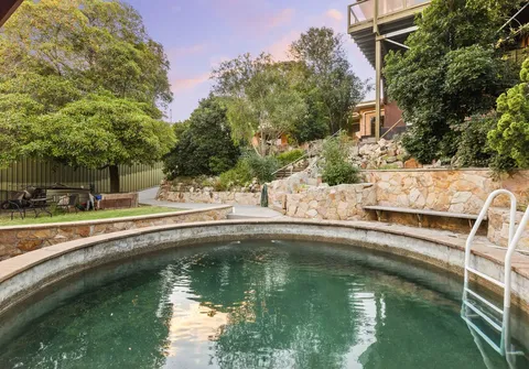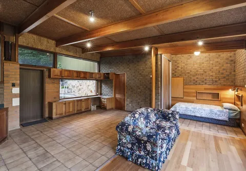 A self-contained flat, complete with a bedroom, kitchenette, living space, and bathroom, provides an idyllic guest retreat with a picturesque balcony. Additional living spaces include a games room, rumpus room, and studio, complemented by lush gardens, a pool, and sought-after character features like timber panelling, stone accents, brick feature walls and so much more.
