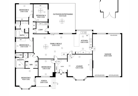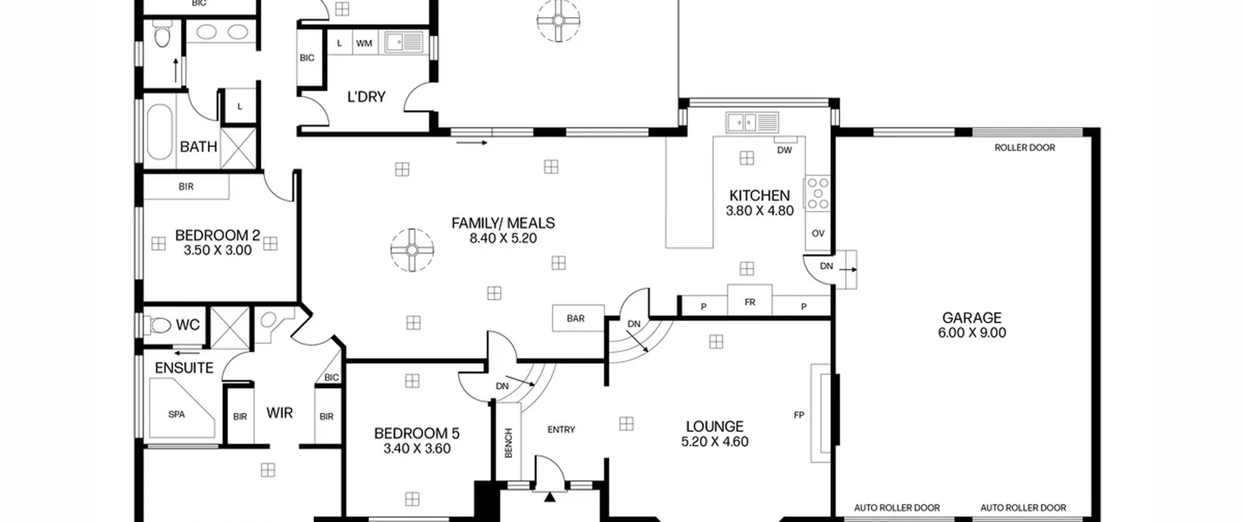 - Powered double width 4-car garage under main roof with over-size auto roller doors, internal home entry, rear roller door