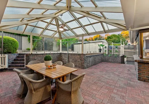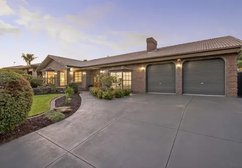 Equally impressive outdoor facilities include double and single powered garages, a garden shed and that magnificent entertainer’s haven: a pitch-roofed pergola in paved, split-level, landscaped surrounds.