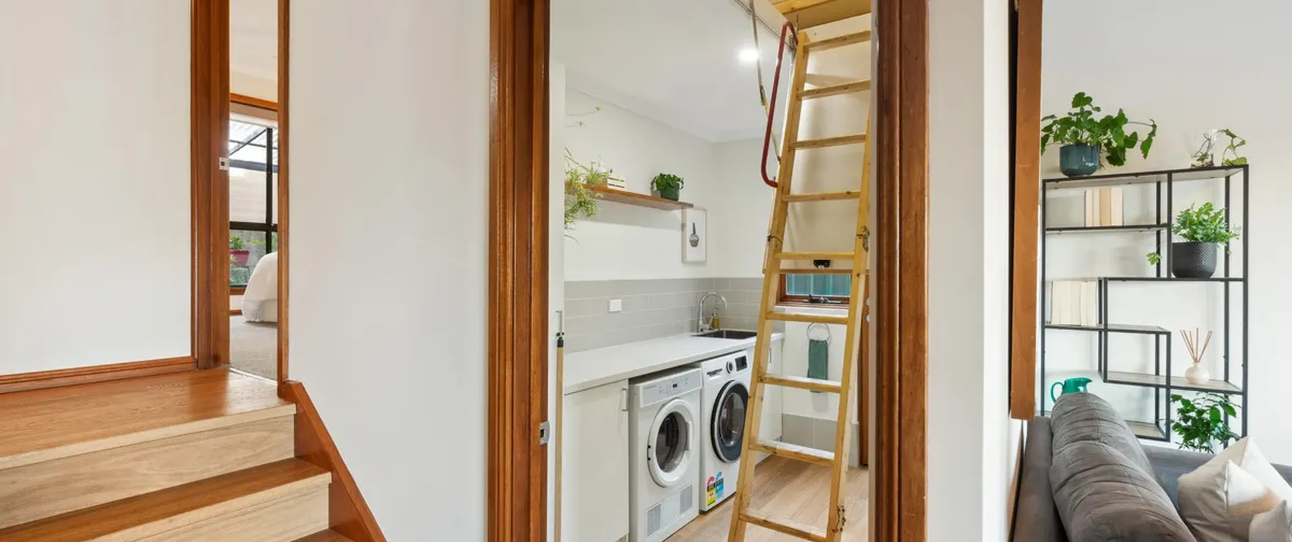 - Laundry with storage and roof storage attic providing incredible storage capacity