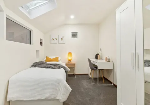 - Bedroom 4 adaptable as a study, with a view of the decked balcony